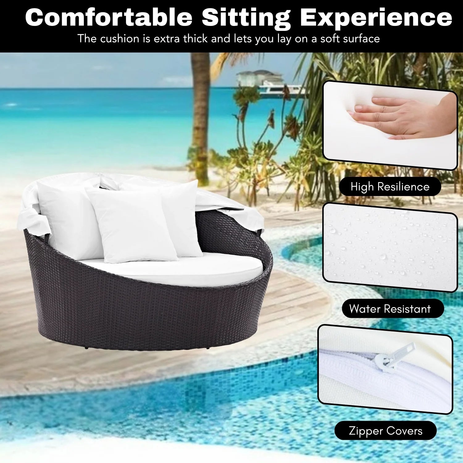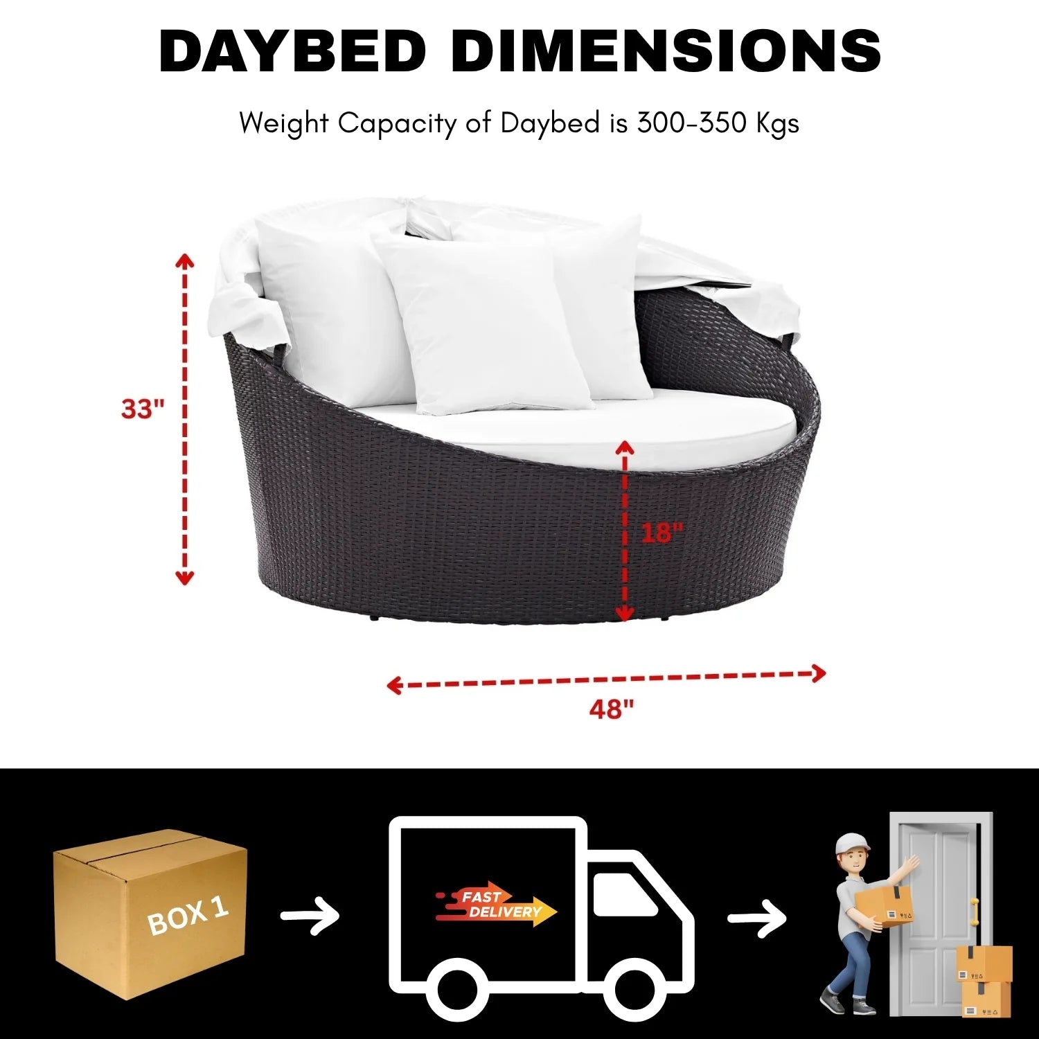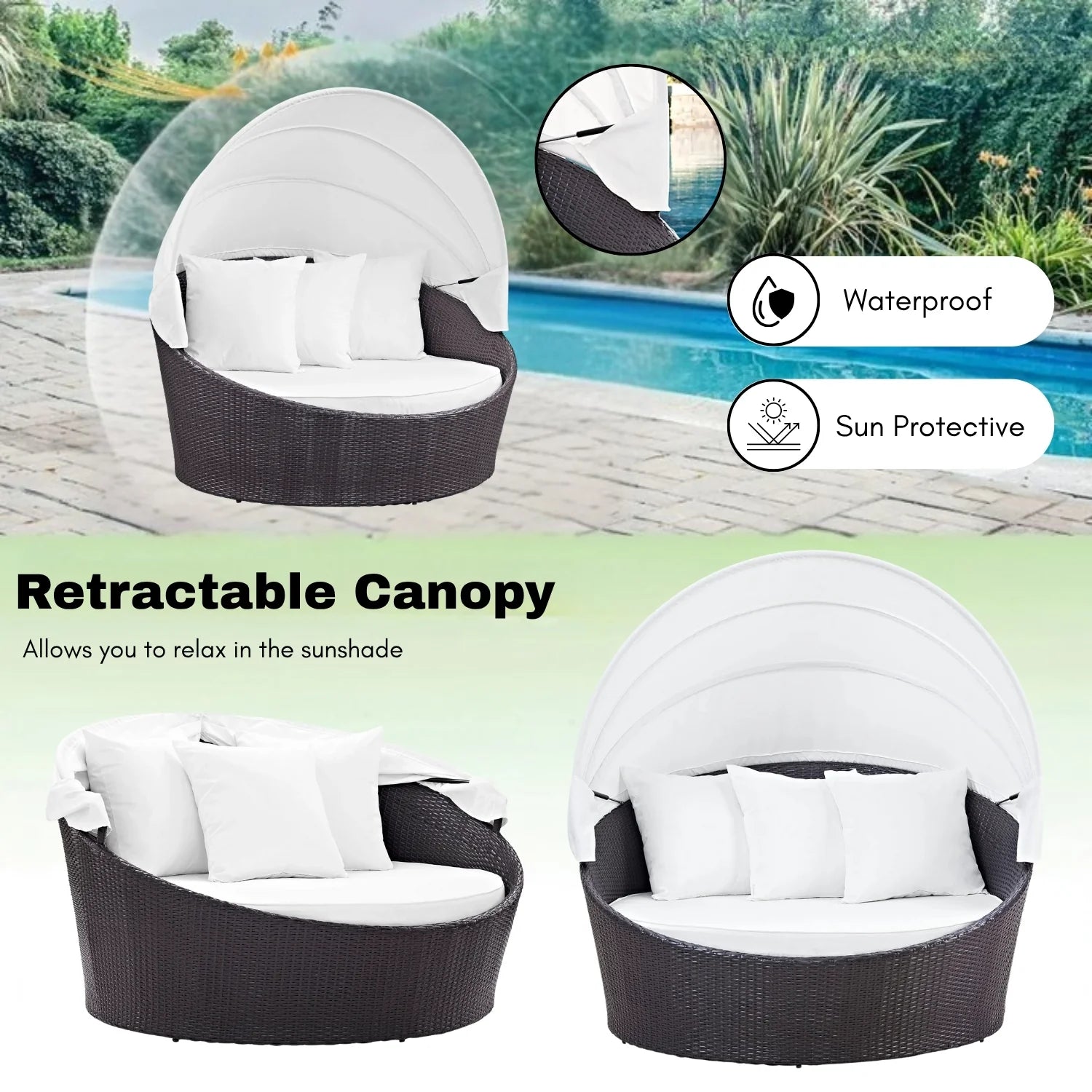 Adama Outdoor Rattan Wicker Patio Daybed with Retractable Canopy