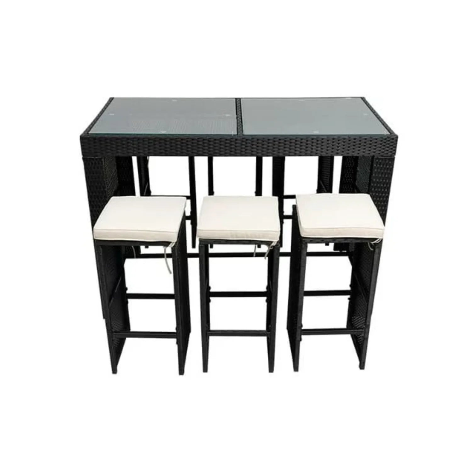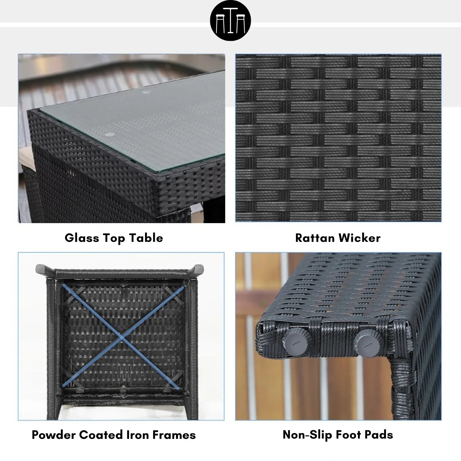 Ayana 7-Piece Outdoor Rattan Wicker Bar Set with Glass Top Table