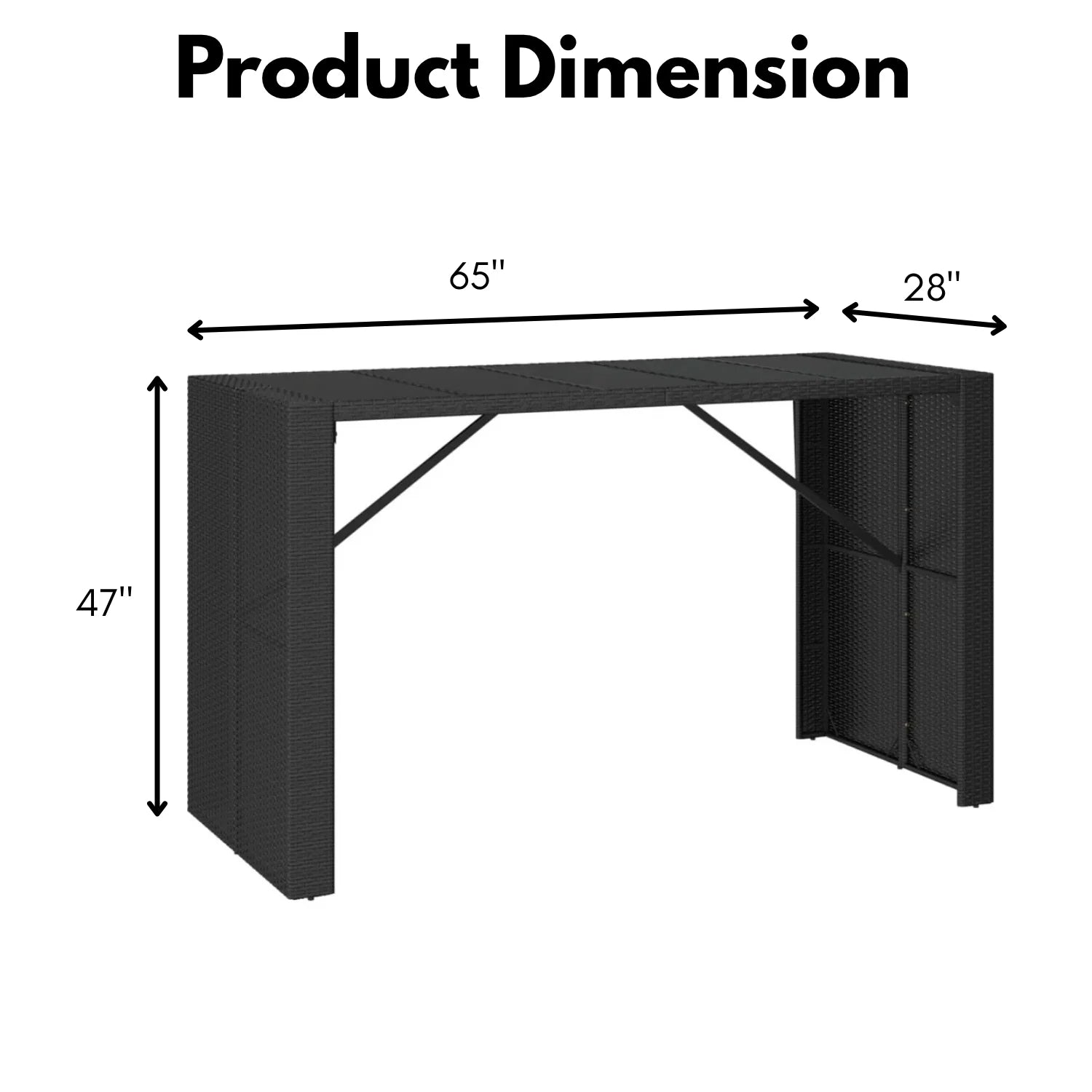- Bar Table Size: 65″Lx28″Wx47″H