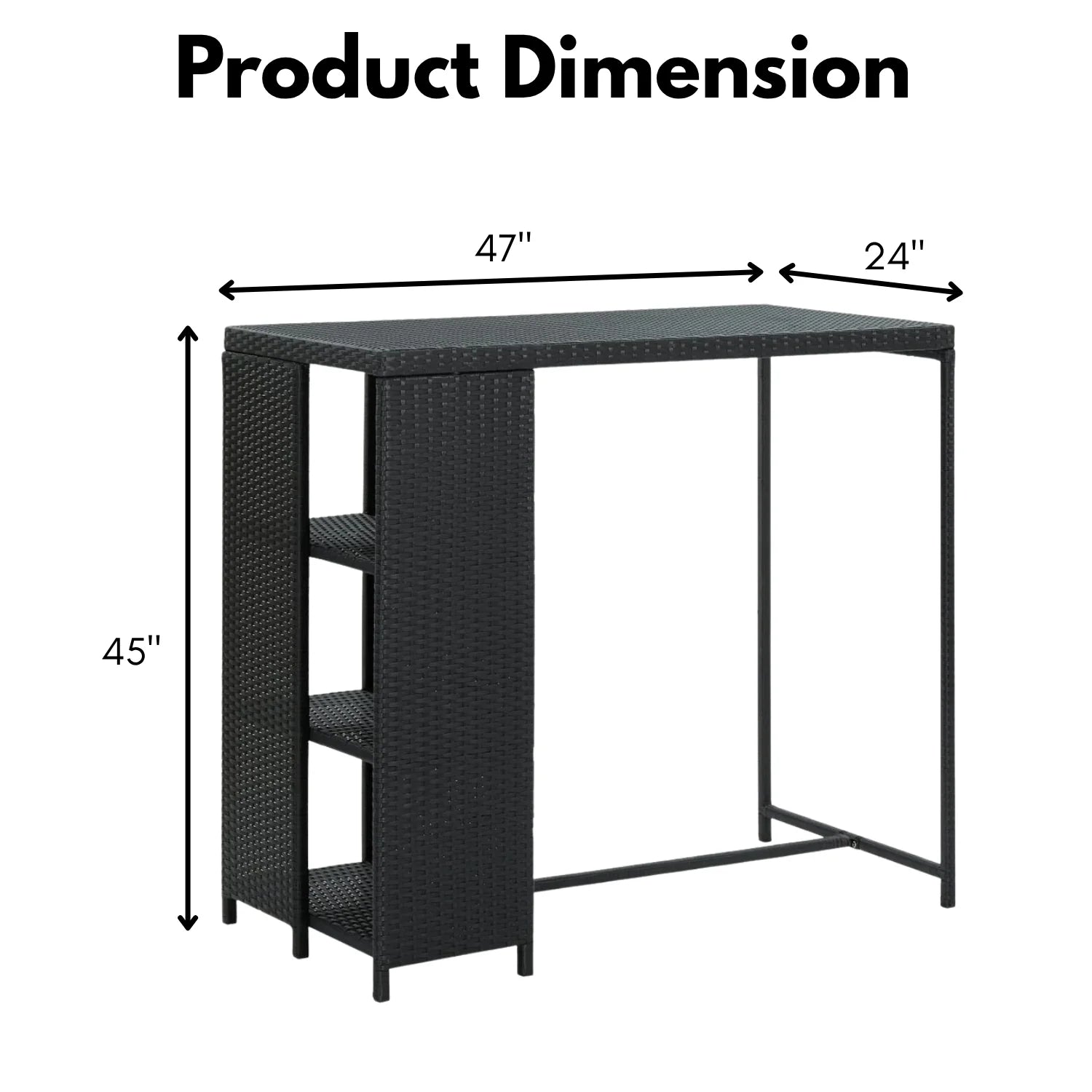 - Bar Table Size: 47″Lx24″Wx45″H
