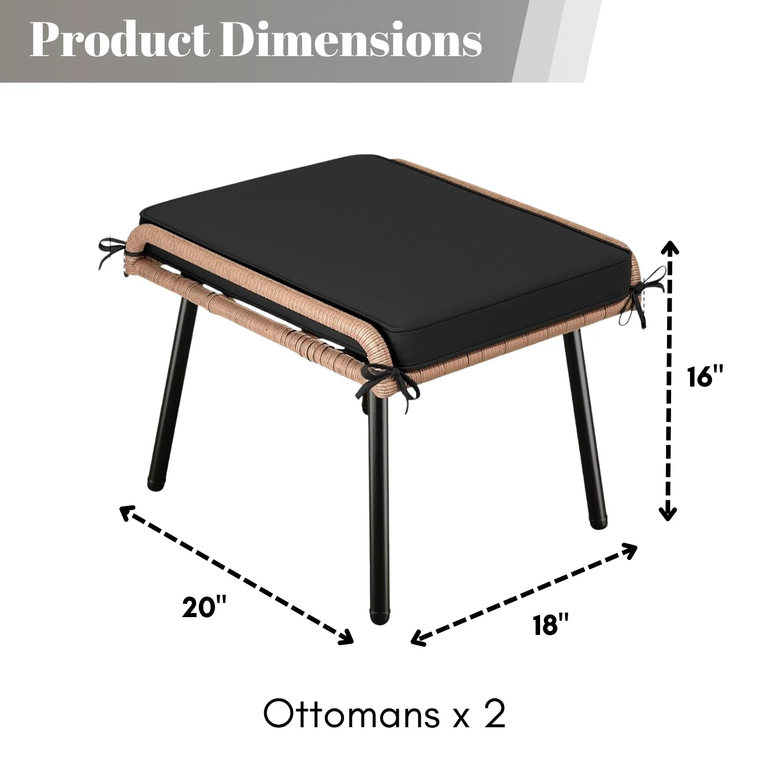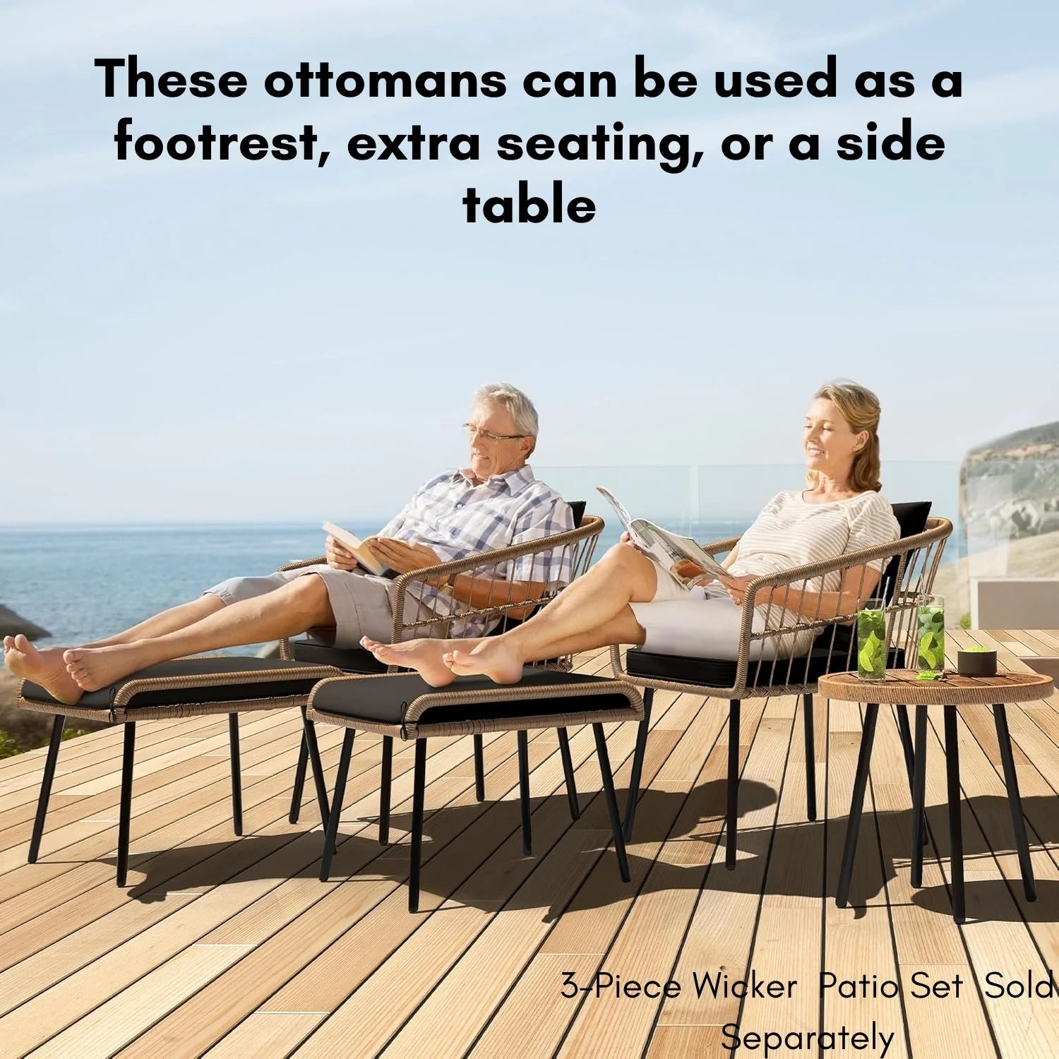 Jivanshi Set of 2 Wicker Ottomans, Multipurpose Outdoor Furniture