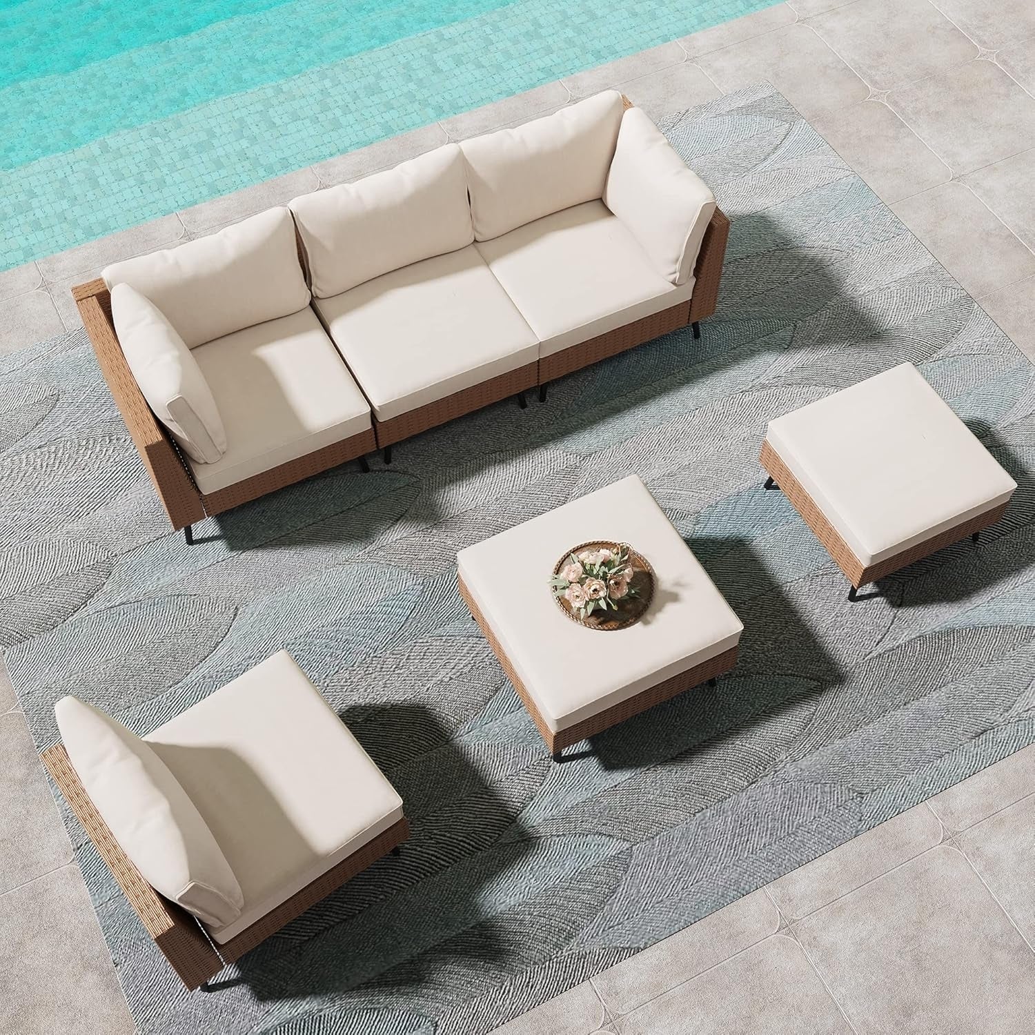 Johanna Outdoor Rattan Wicker 6-Seater Sofa Set
