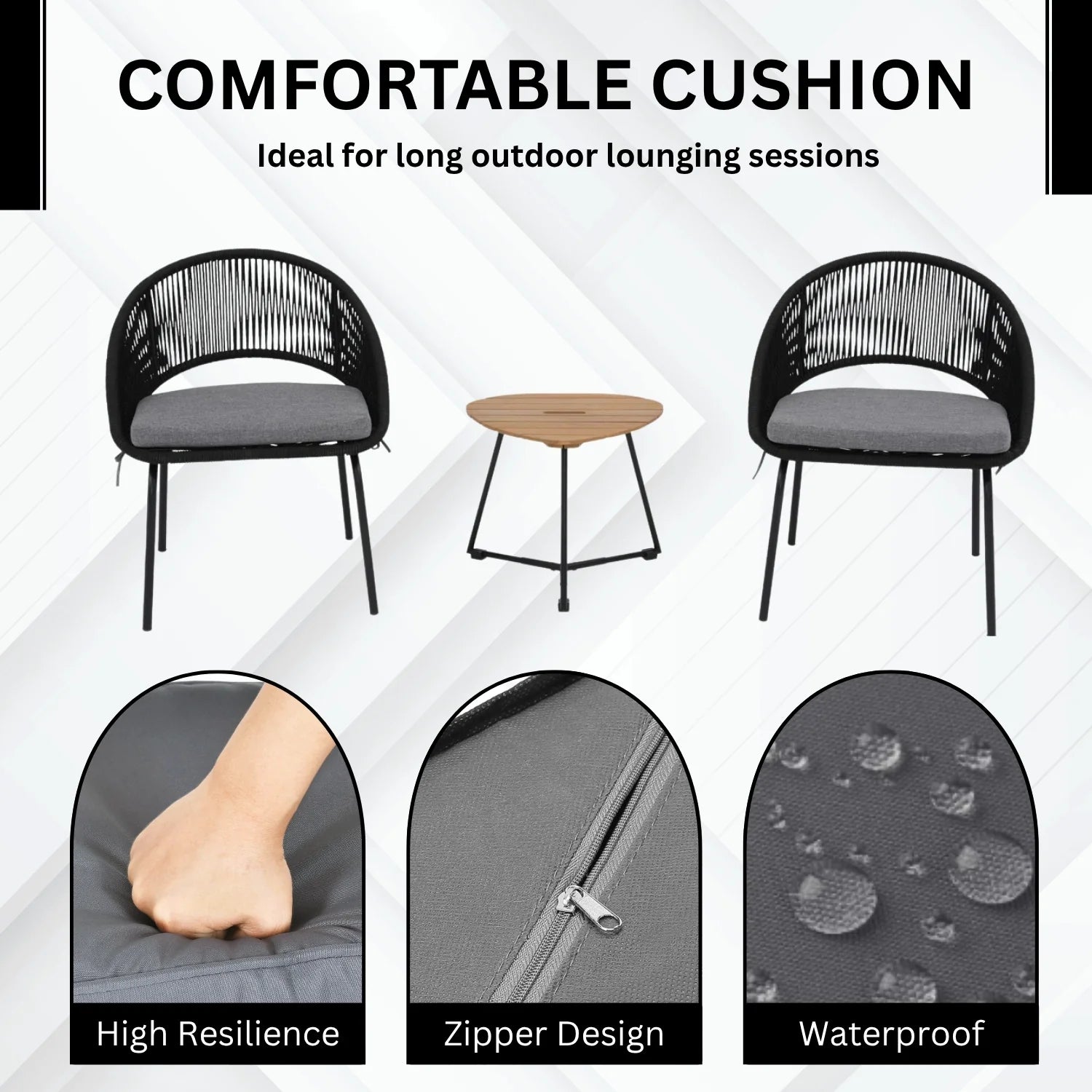 Aria Lamia 3-Piece Rope Patio Set - Perfect for Outdoor Entertaining