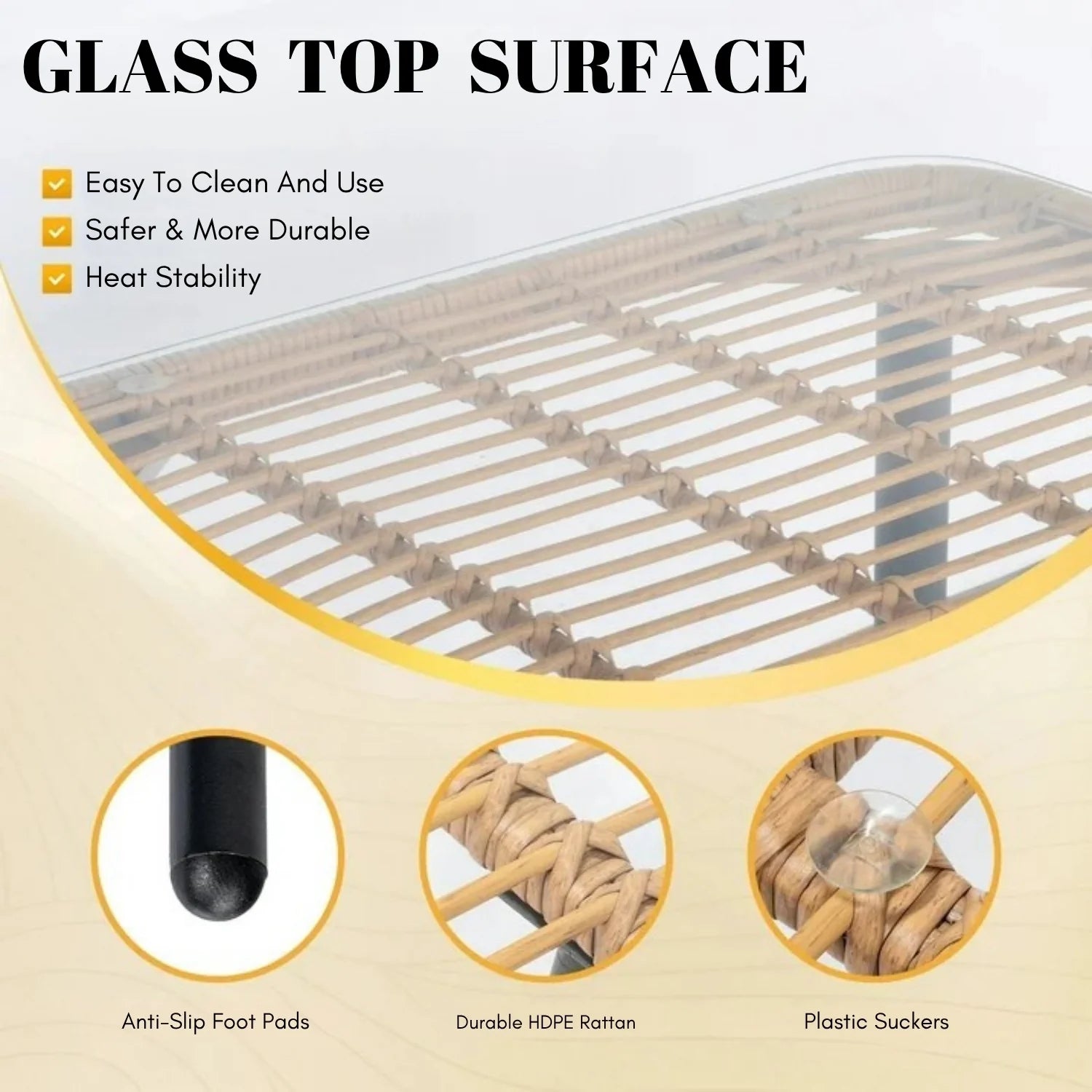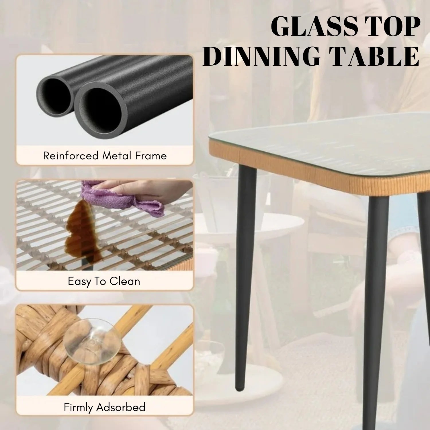 Macarena 5-Piece Outdoor Patio Dining Set With Rattan Chairs & Glass-Top Table