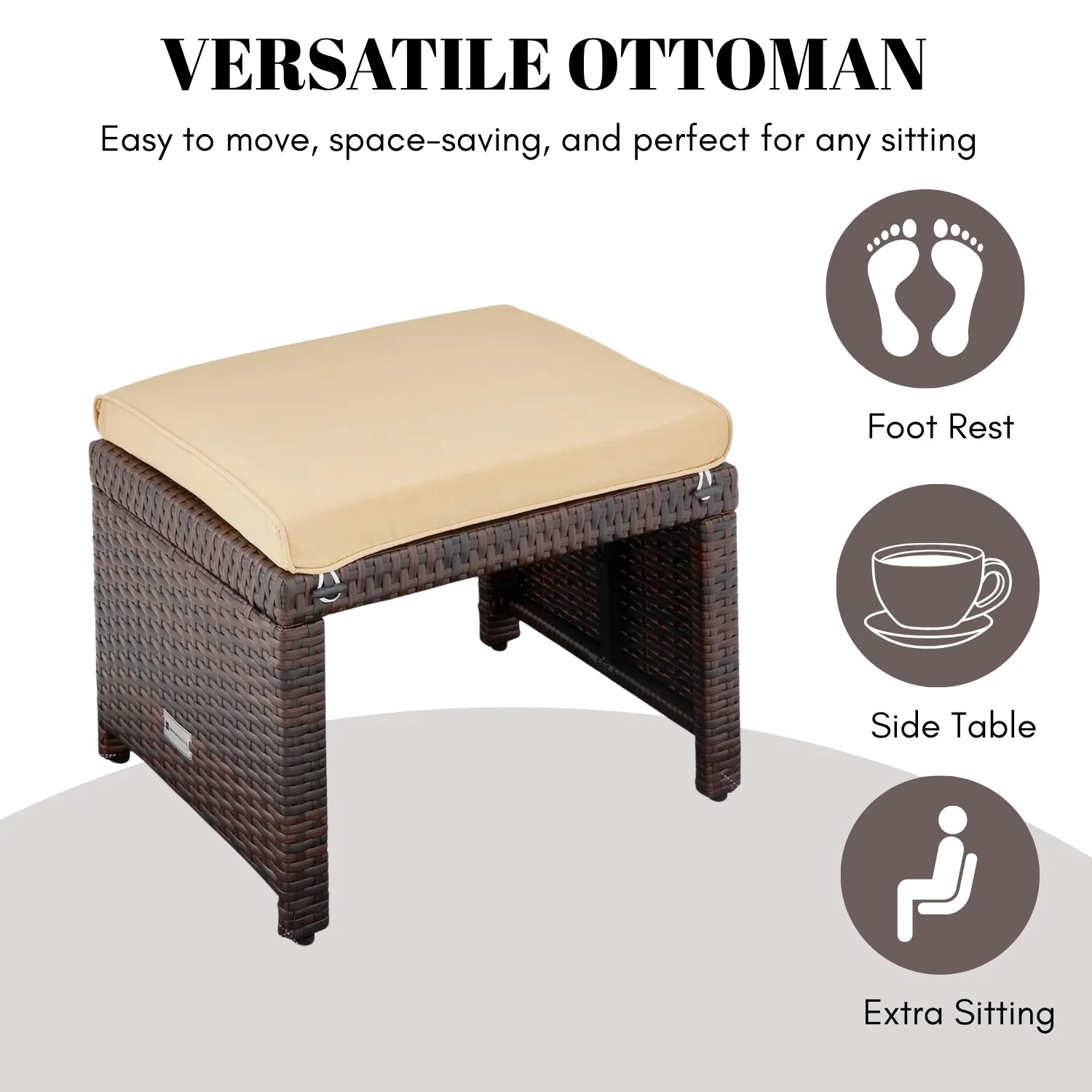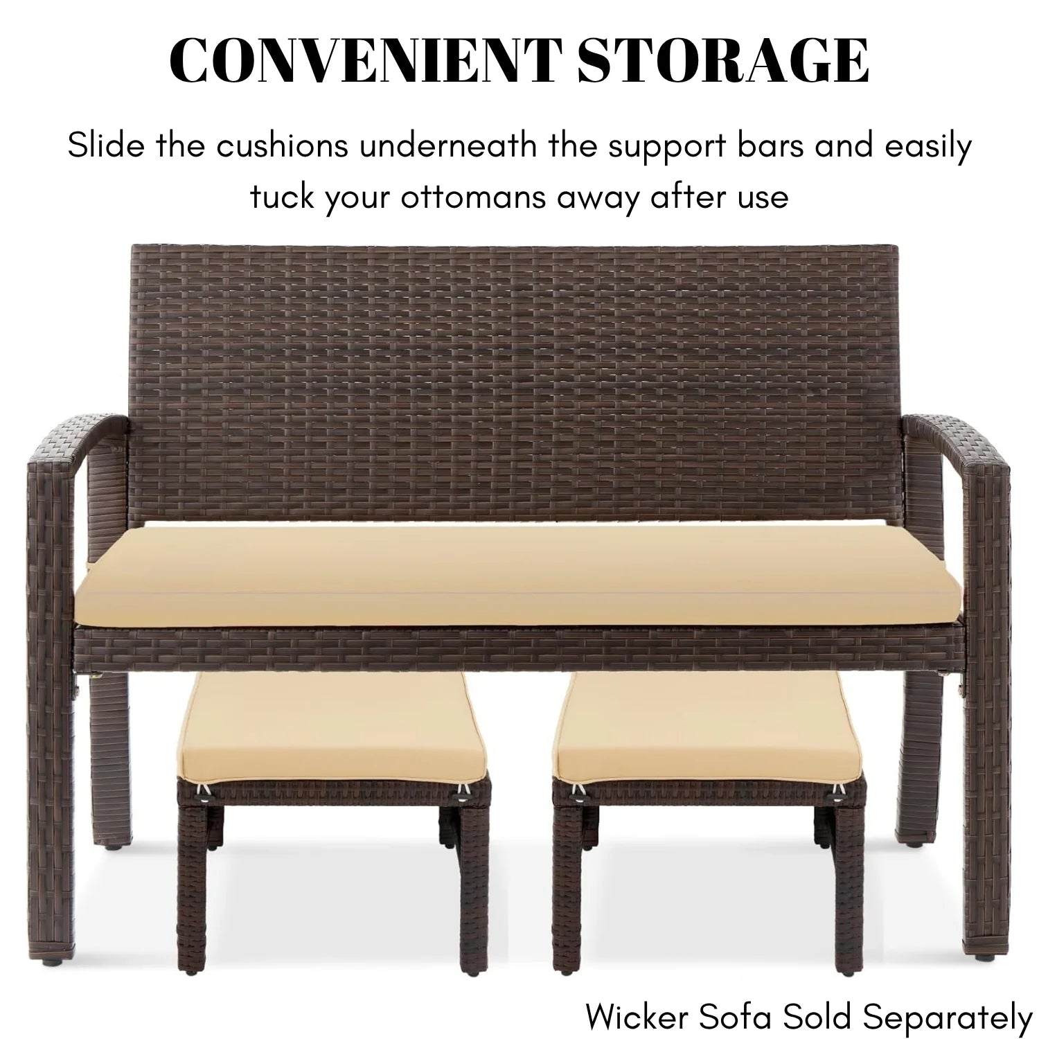 Mahek Set of 2 Wicker Ottomans, Multipurpose Outdoor Furniture