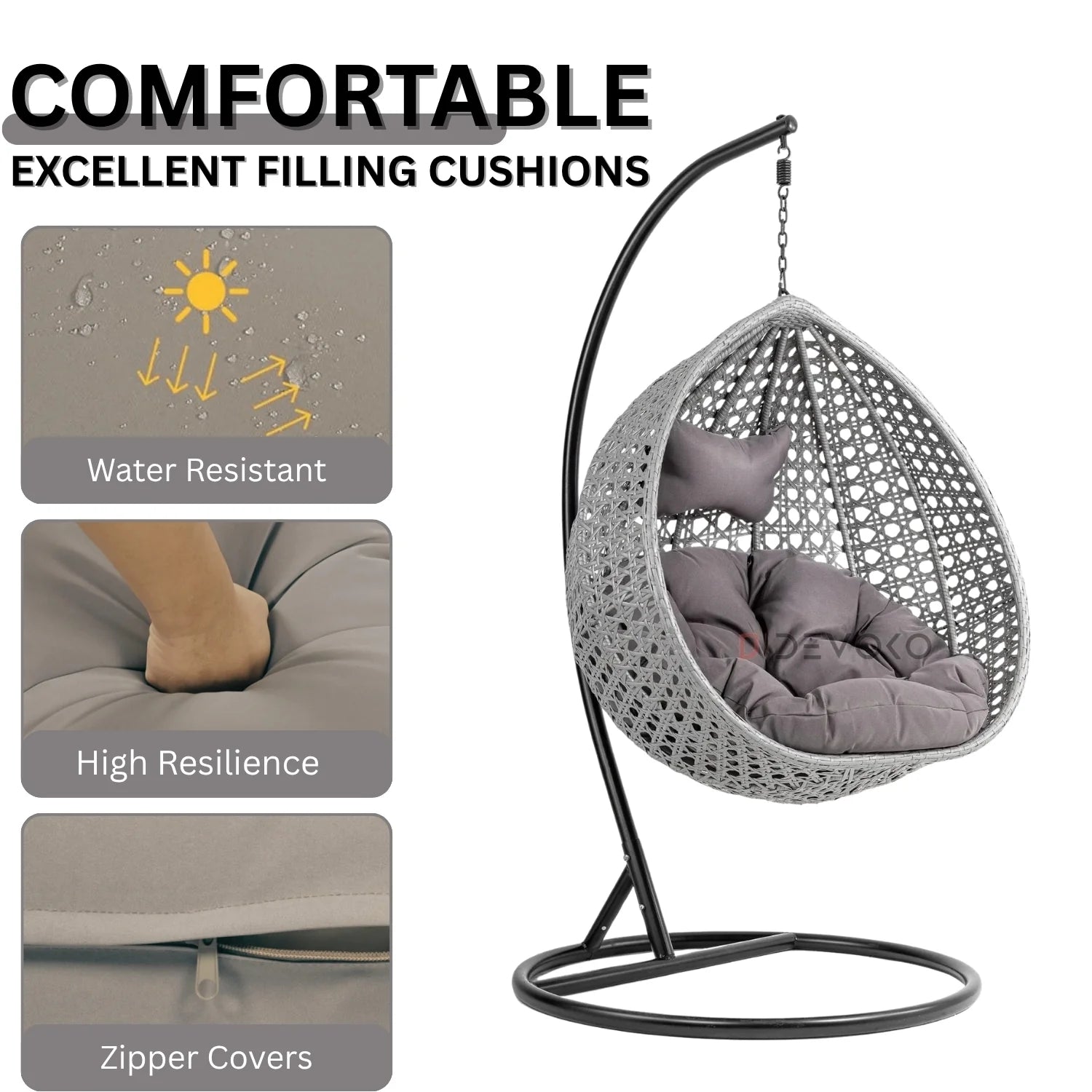 Nainika Single Seater Rattan & Wicker Swing (Grey)