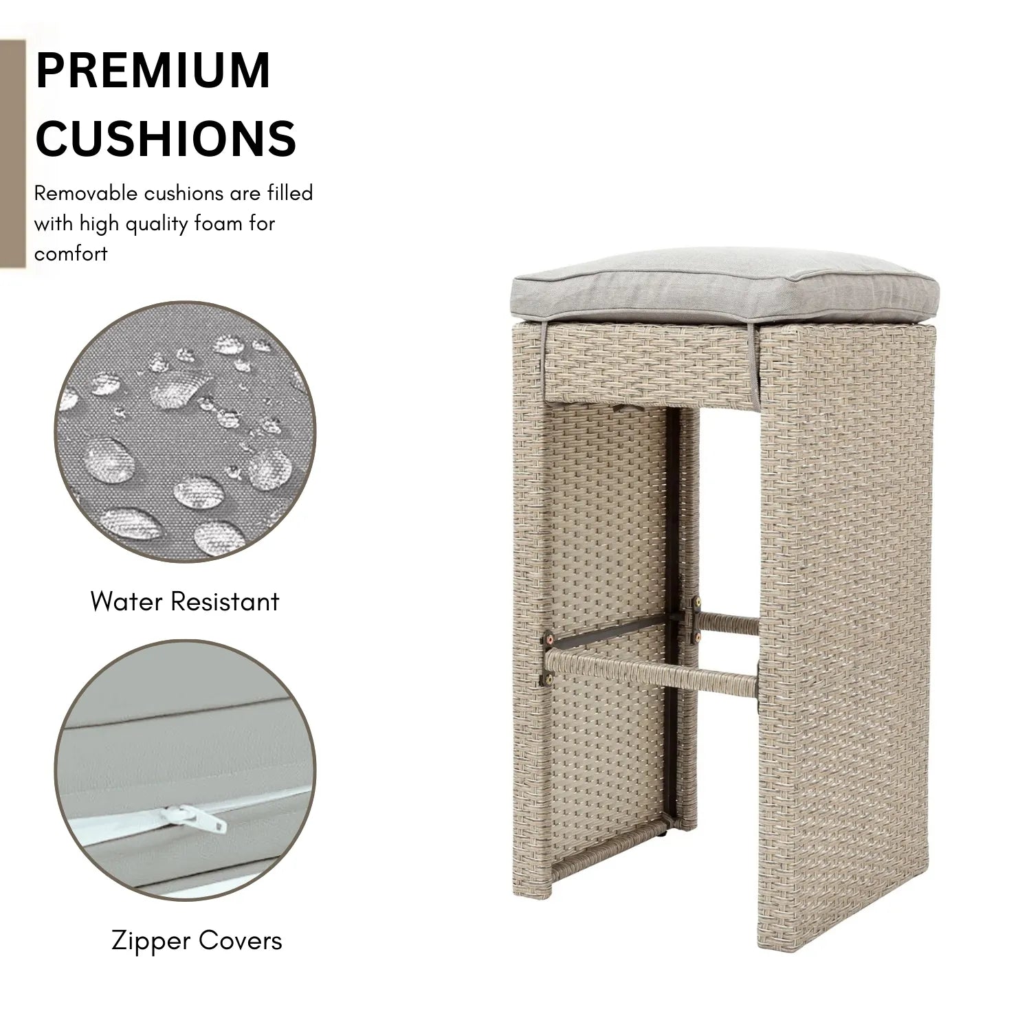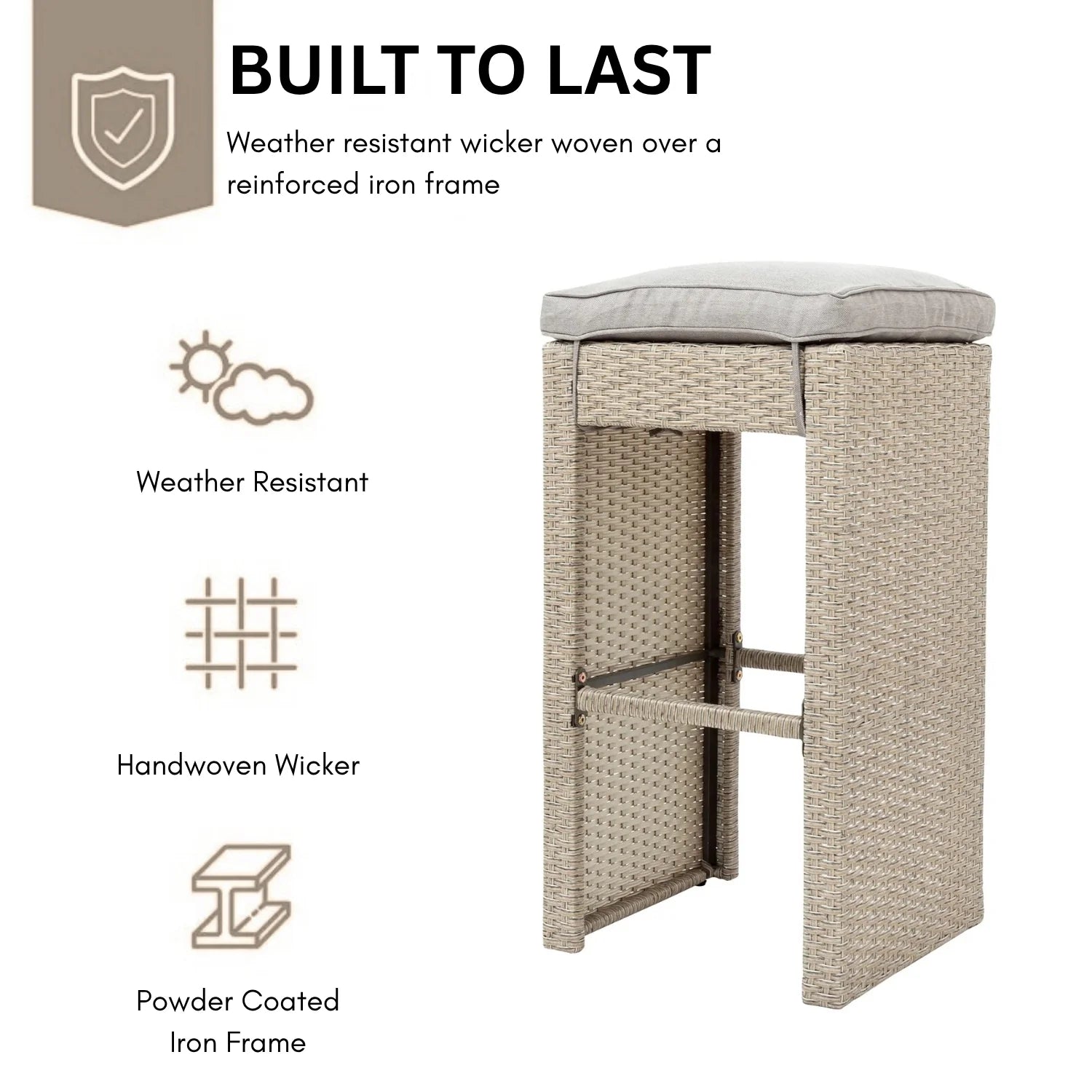 Natsuki 5-Piece Outdoor Rattan Wicker Bar Set with Glass Top Table