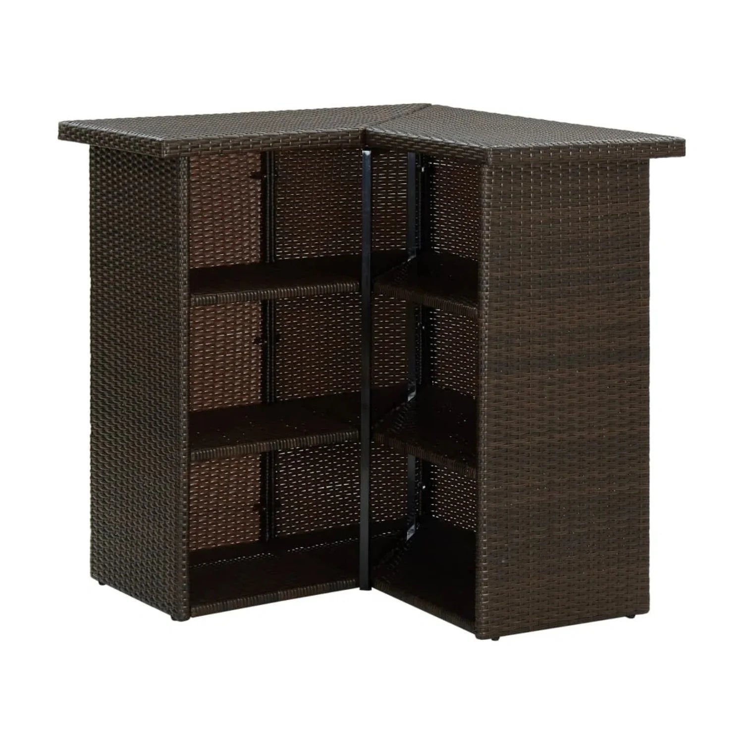 Nieves Outdoor Rattan Wicker Bar Table With Storage Selves