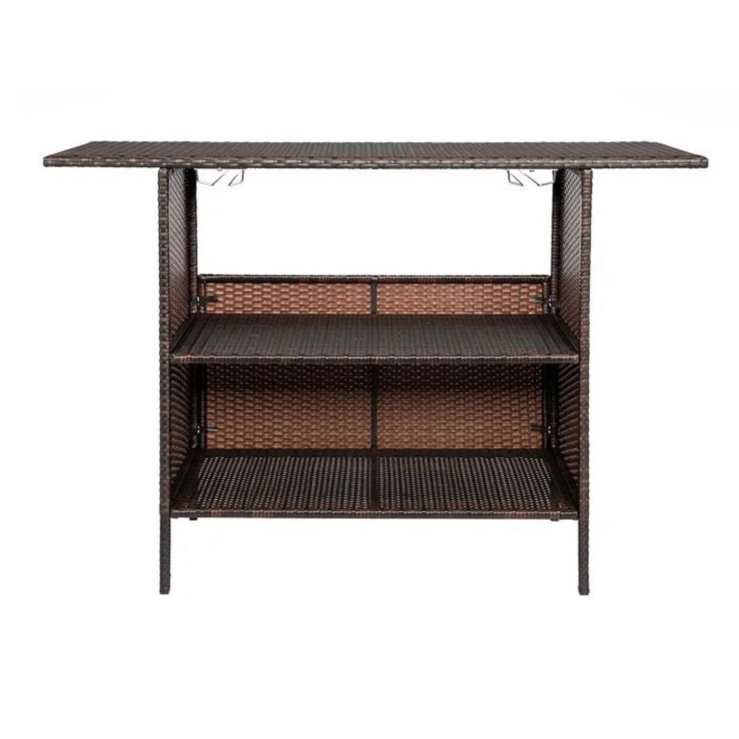 Pilar Outdoor Rattan Wicker Bar Table With Storage Selves