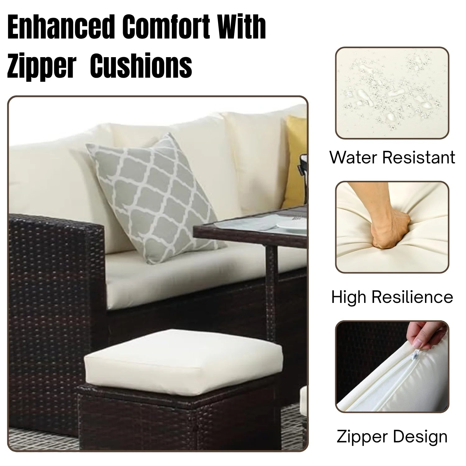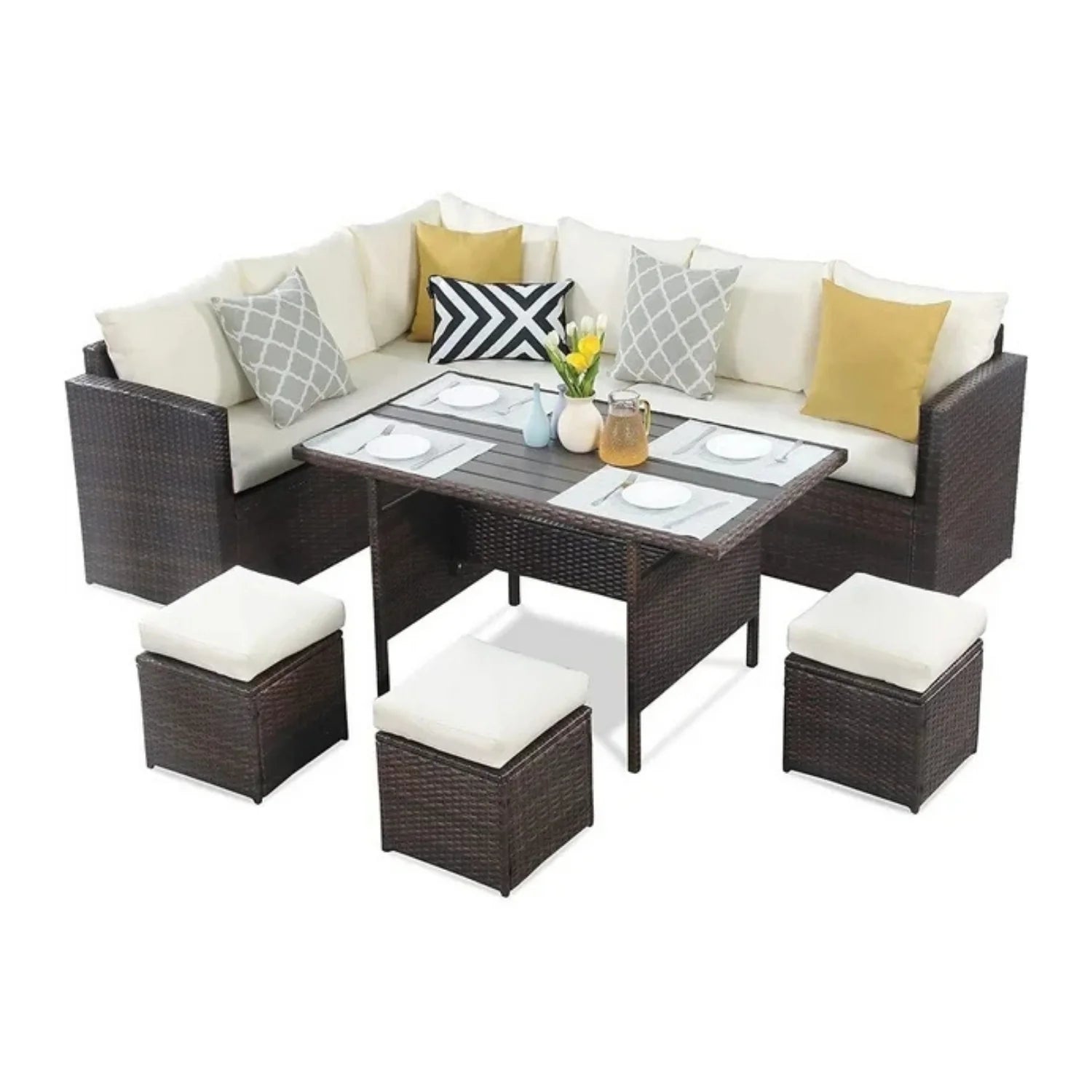 Raffaella 6-Pieces L-Shape Patio Rattan Dining Set