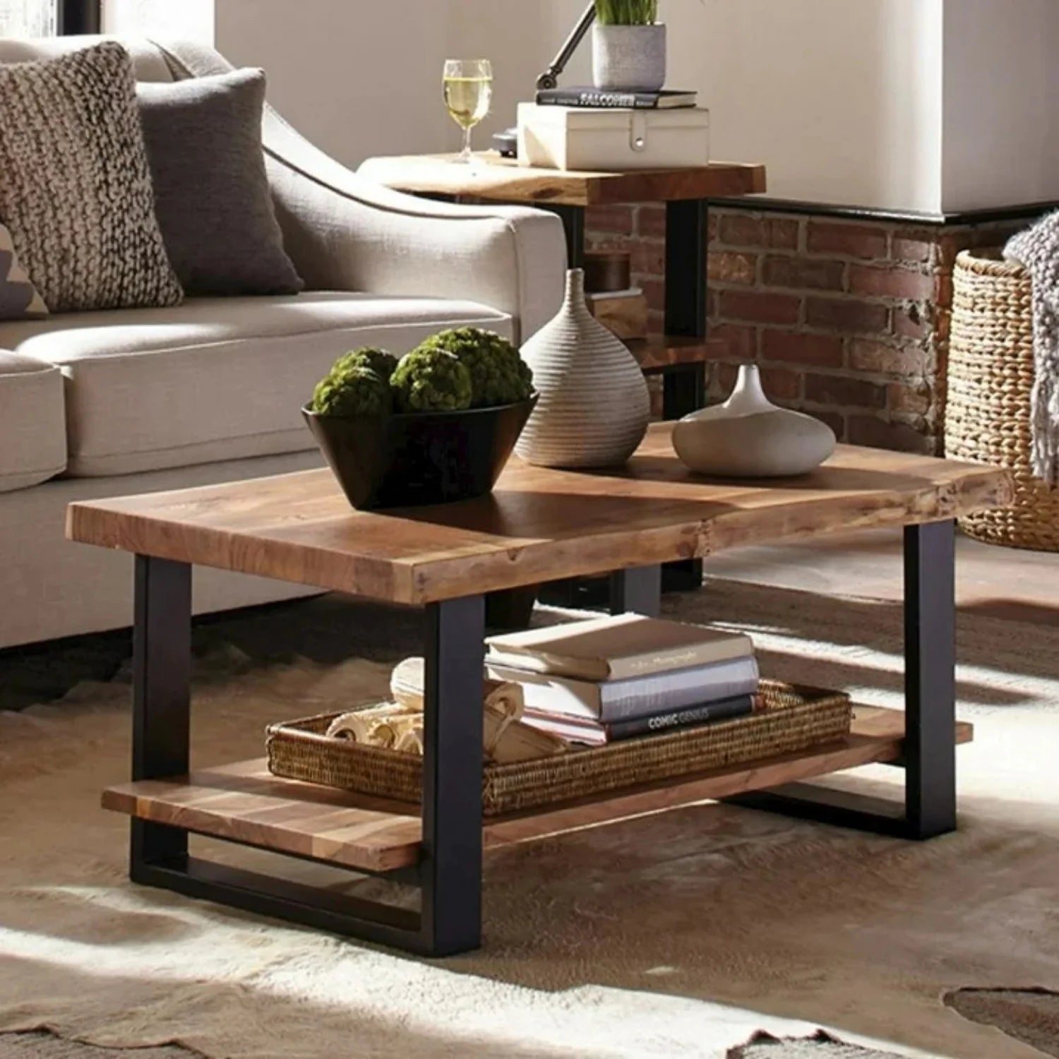 Samira 2-Tier Natural Wood Top Center Table