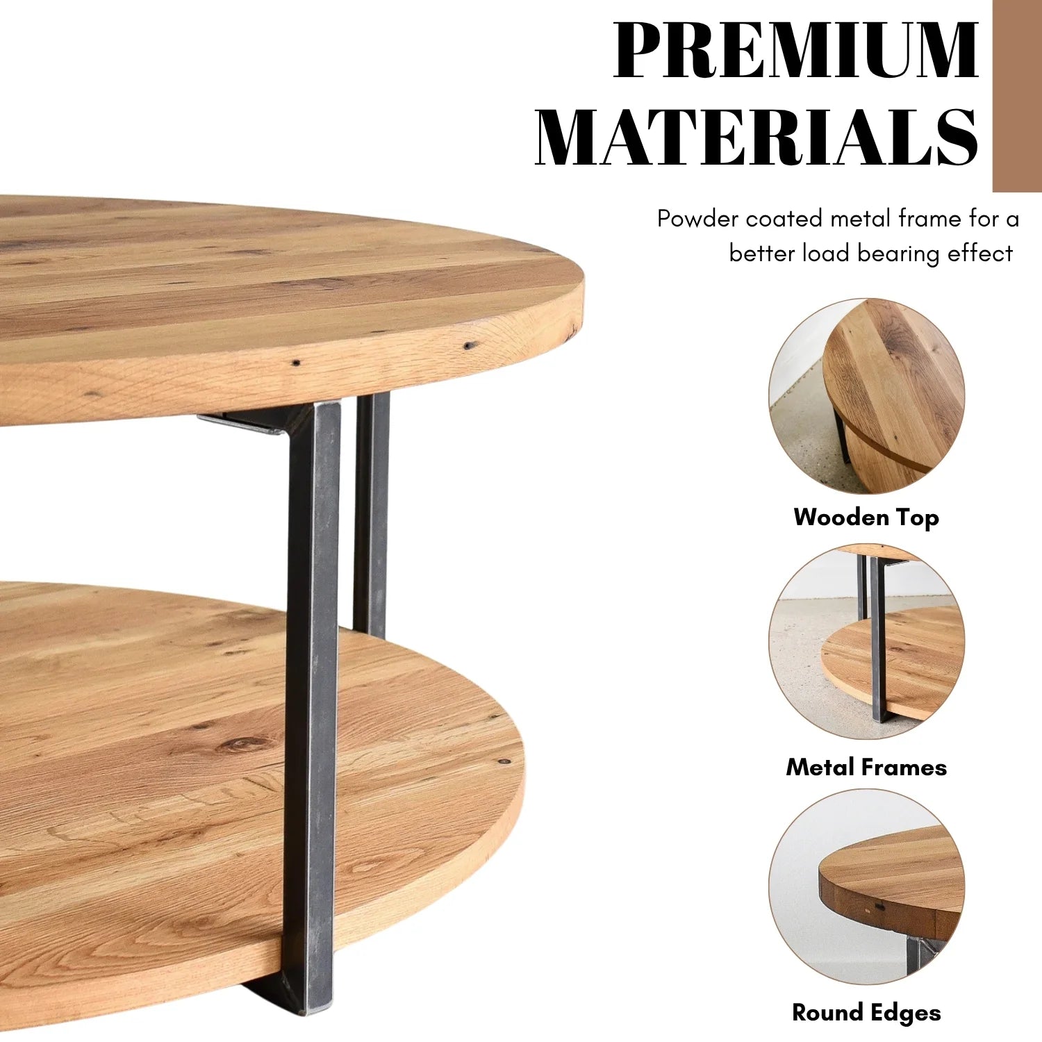 Sheesham Wood Top 2-Tier Round Coffee Table