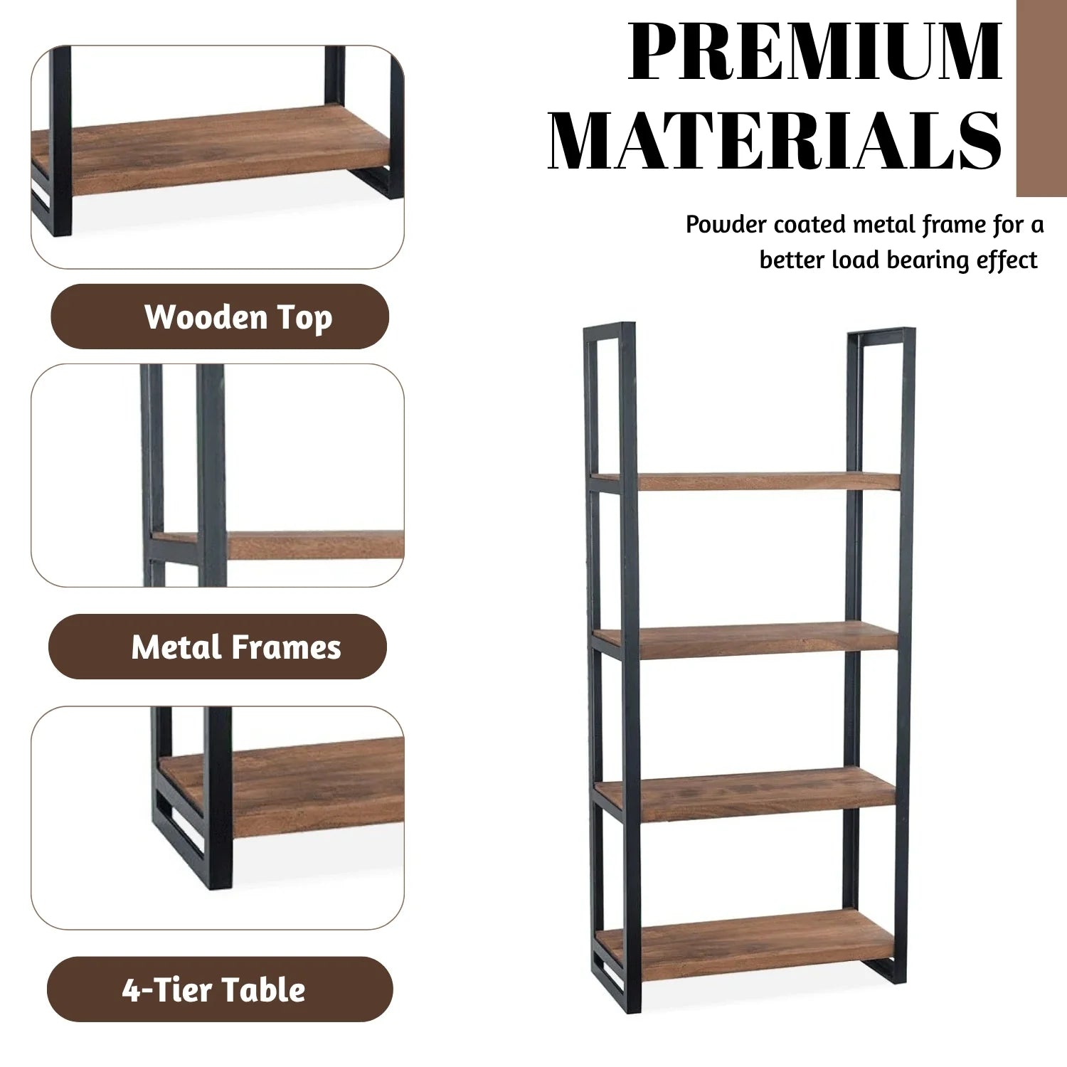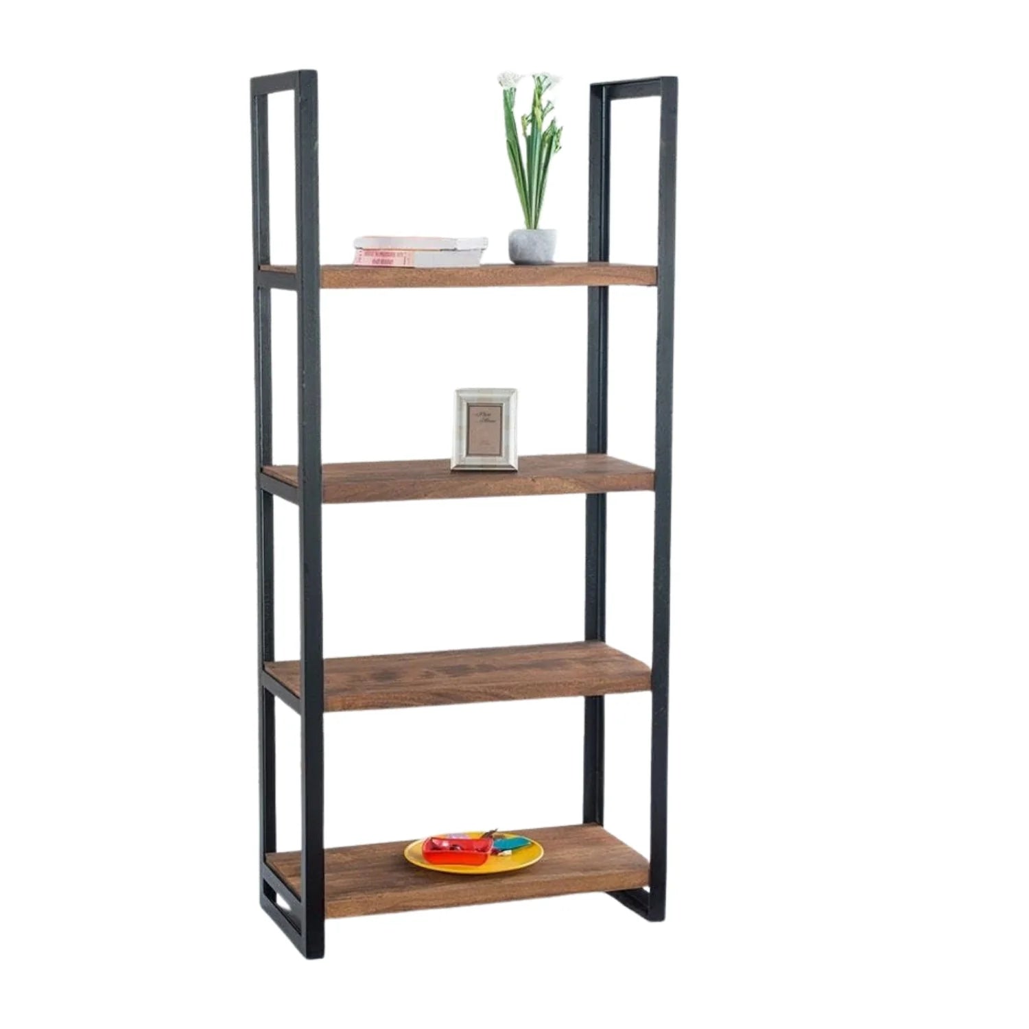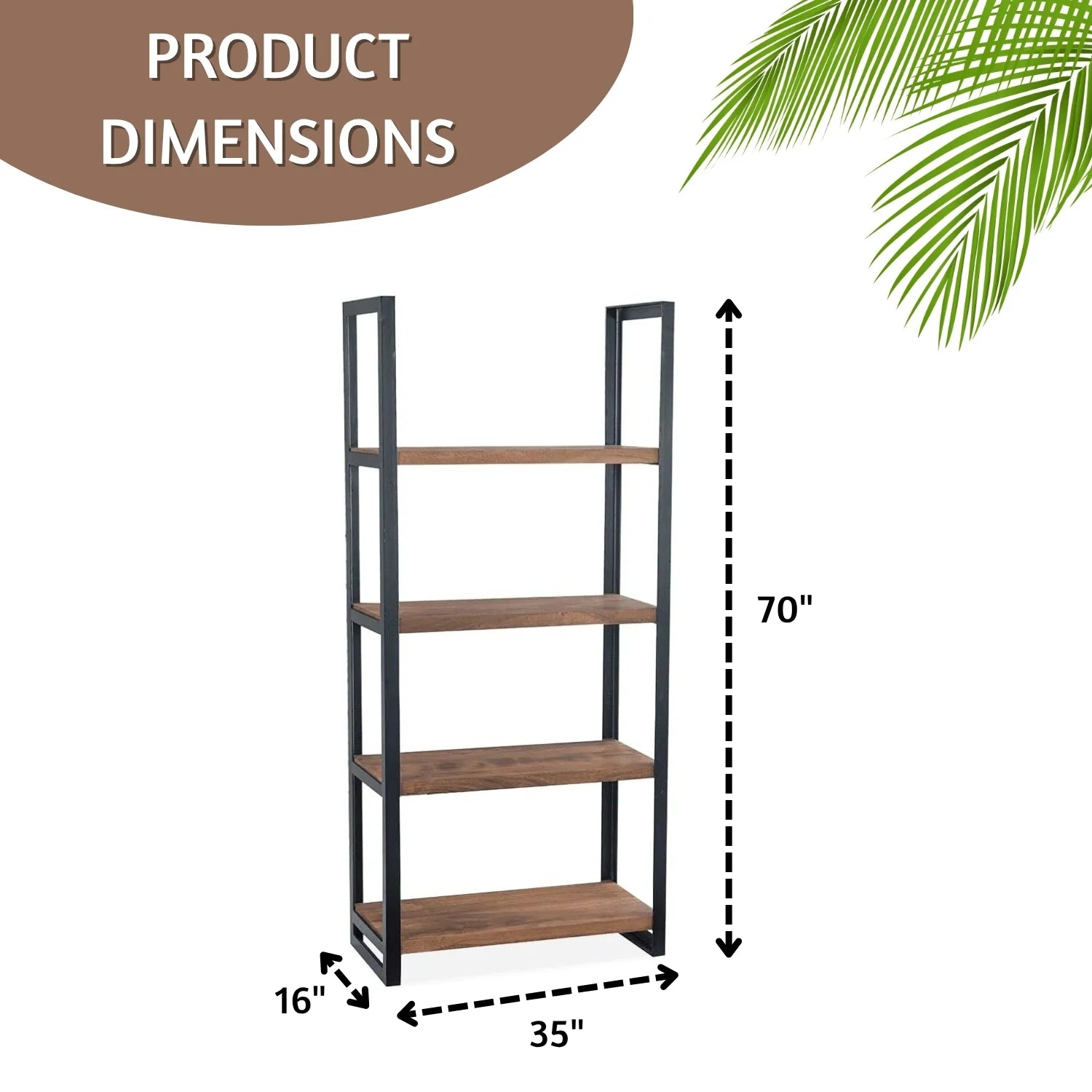 Solid Sheesham Wood 4 Tier Tall Standing Corner Open Bookcase