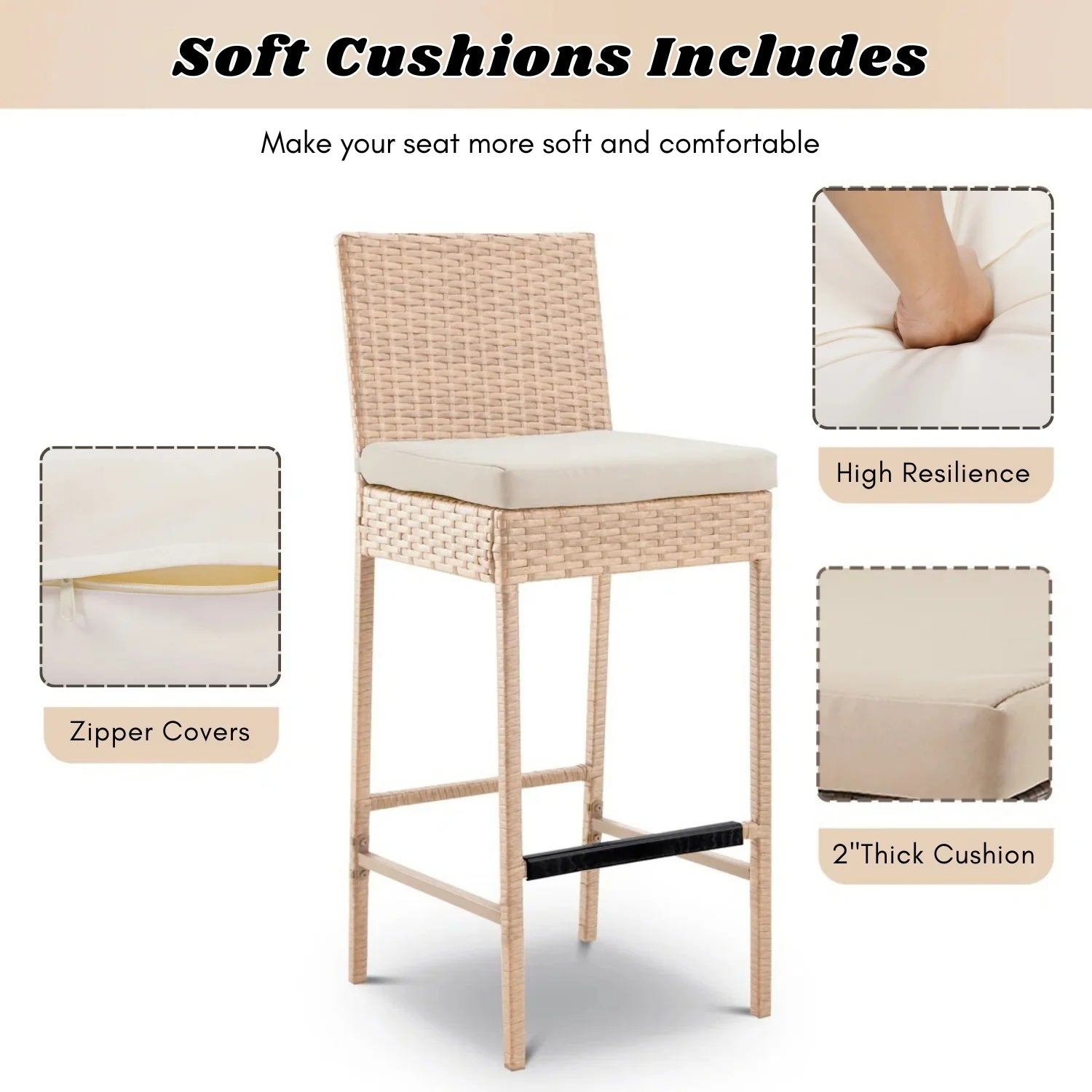 Sybille Outdoor Rattan Wicker Bar Chairs Set of 2