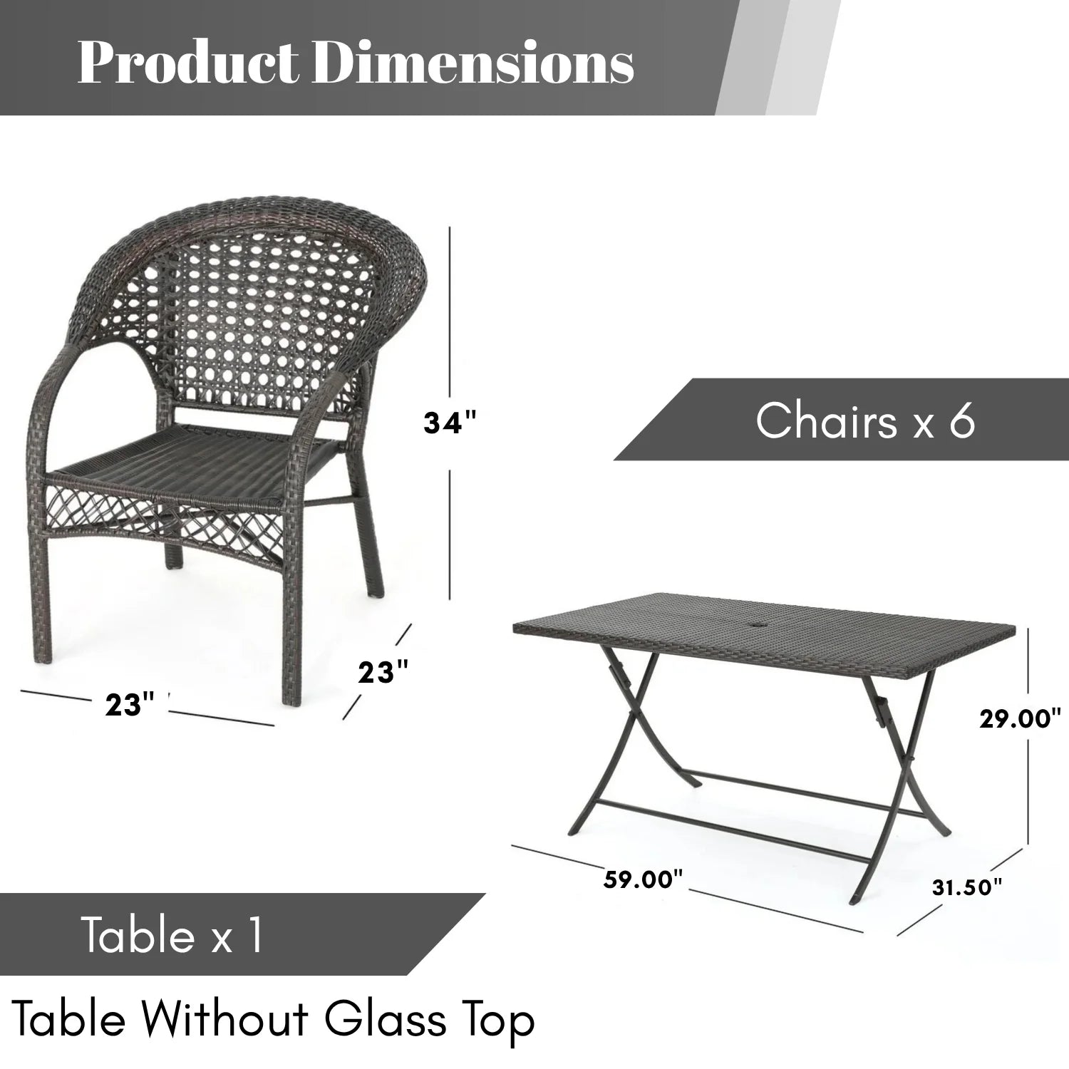 Thalia 7-Piece Outdoor Rattan Wicker Dining Table Set