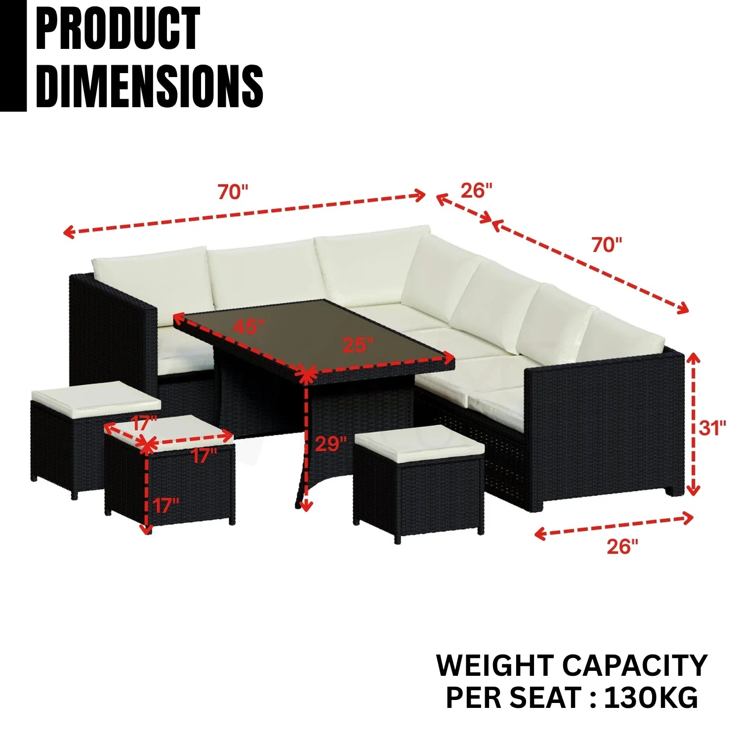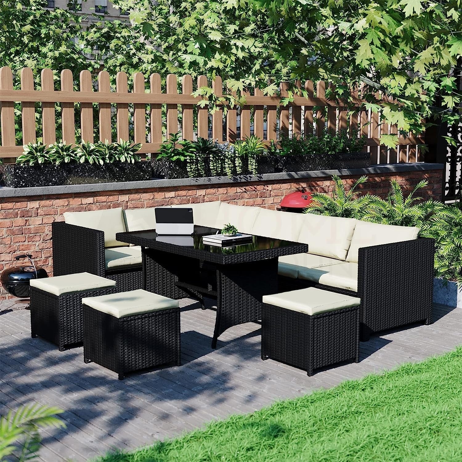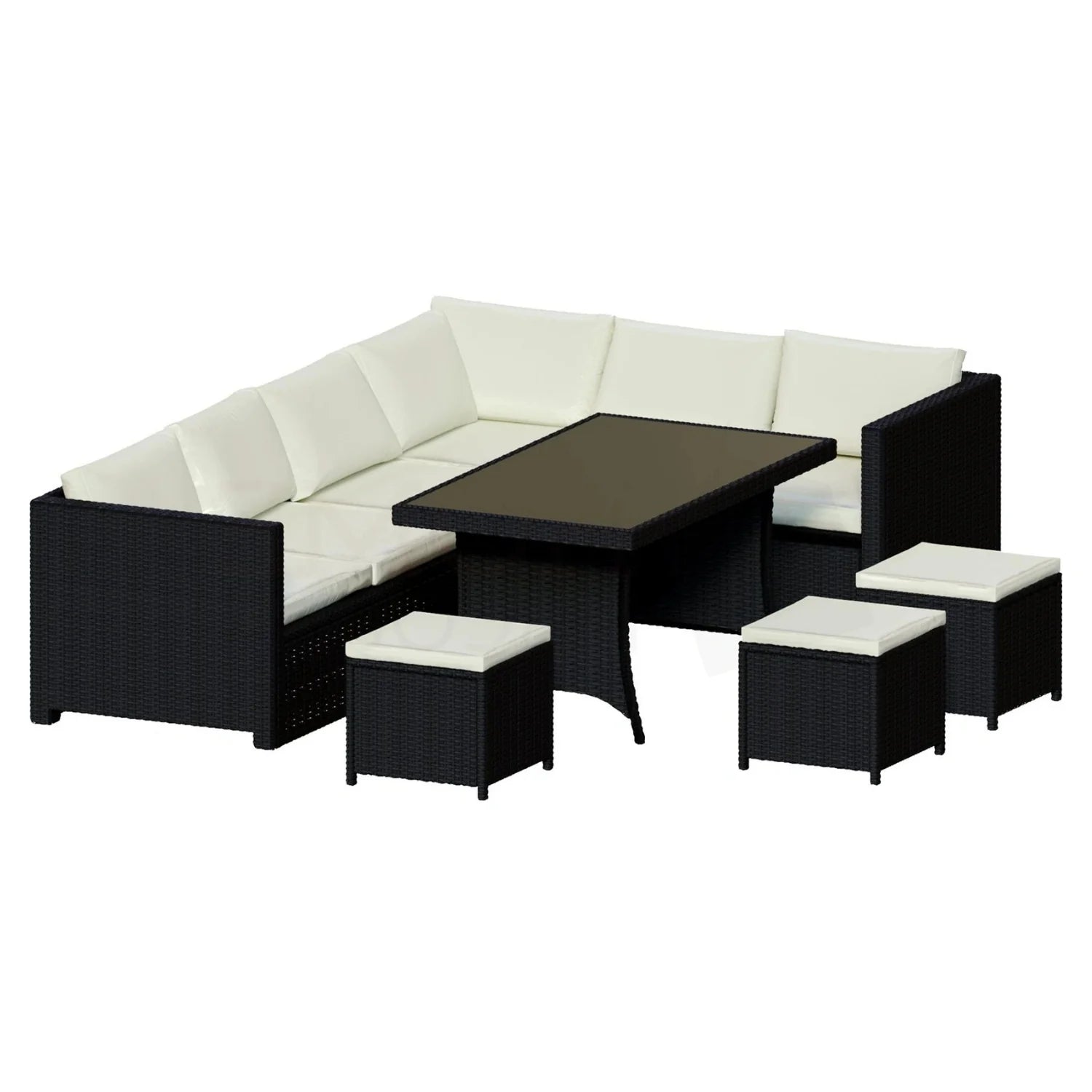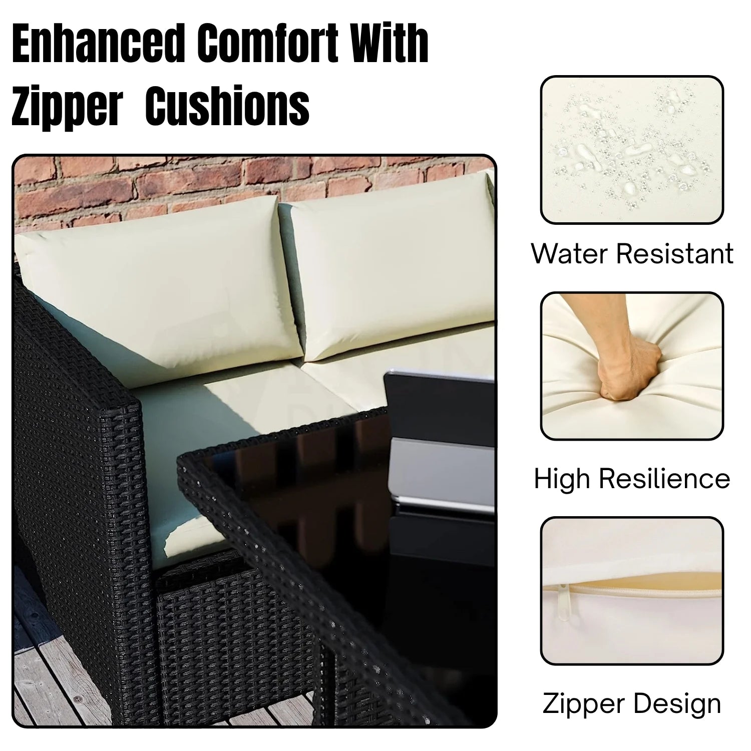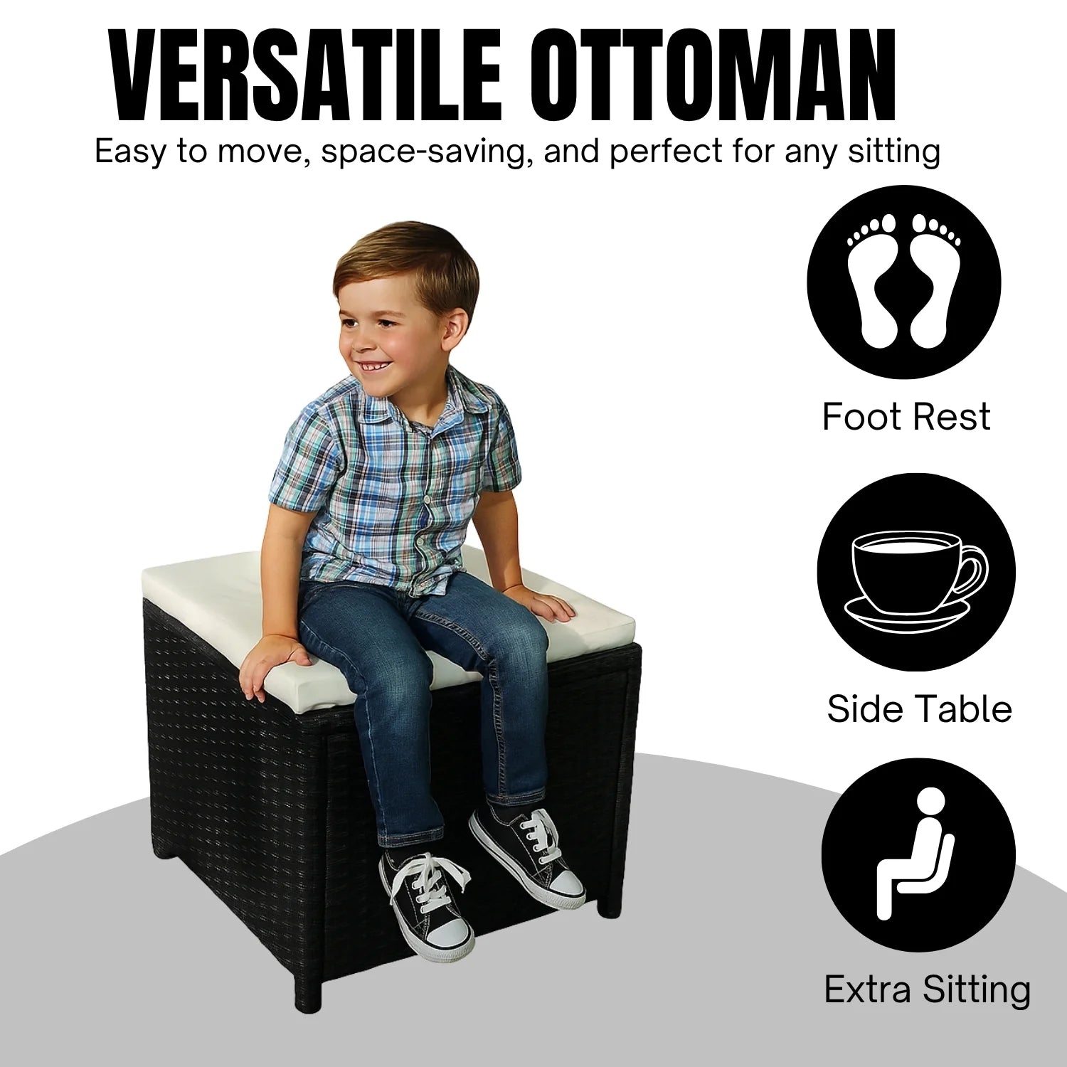 Thea 6-Piece Outdoor Wicker Patio Dining Set – Black/Cream