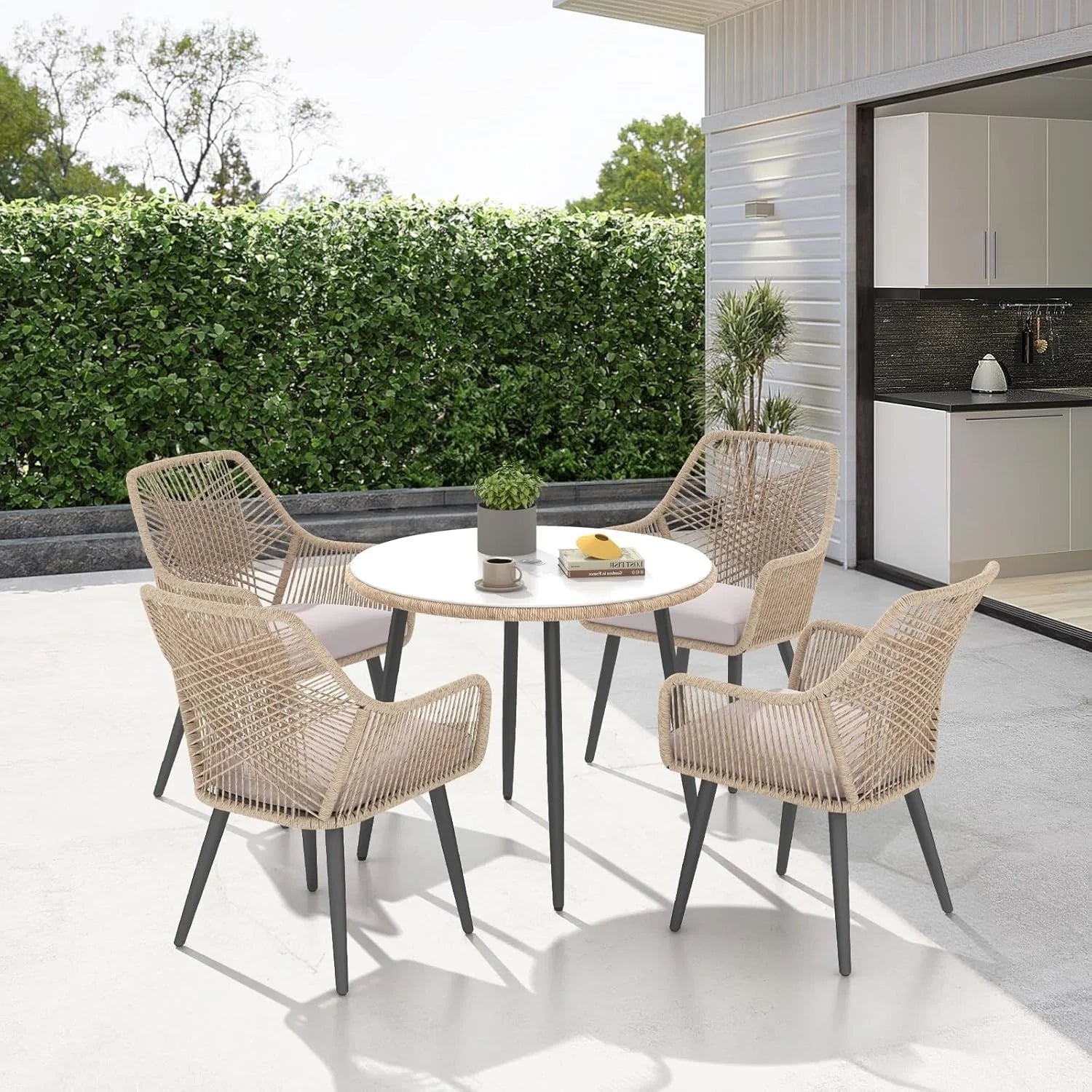 Valentina 5-Piece Outdoor Patio Dining Set with Rope Chairs & Glass Top Table