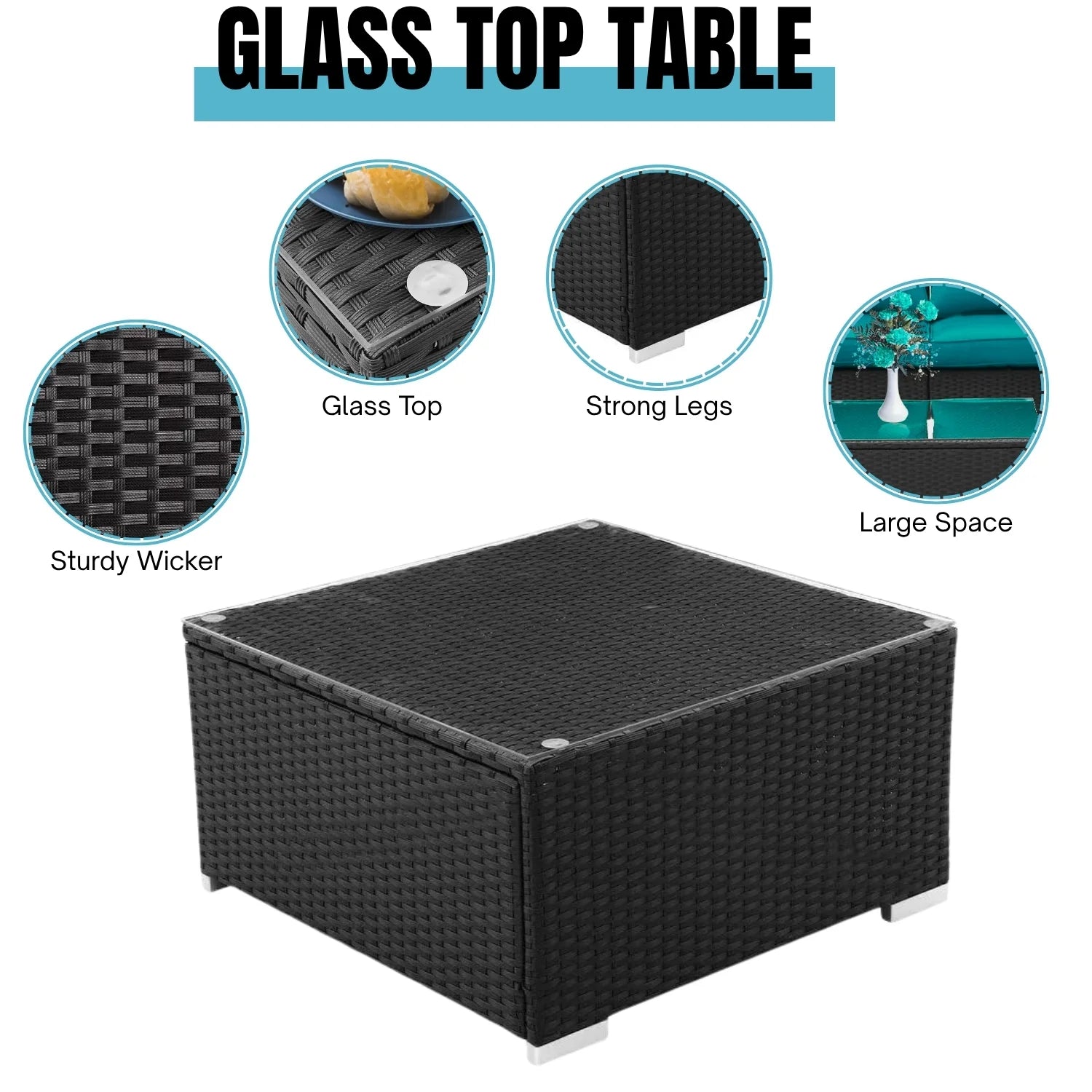 Vesna 6-Piece Outdoor Conversation Set (Black/Sky-Blue)