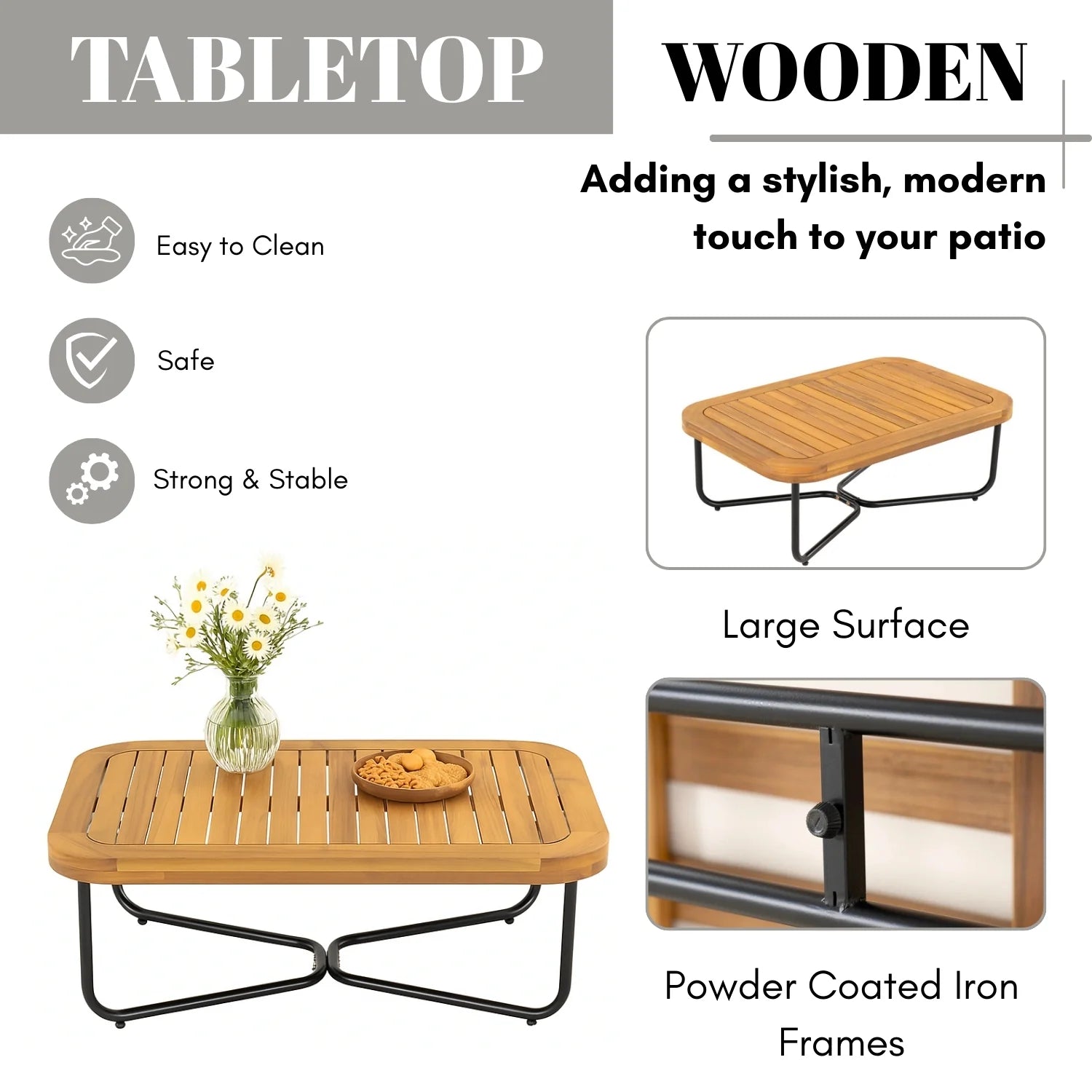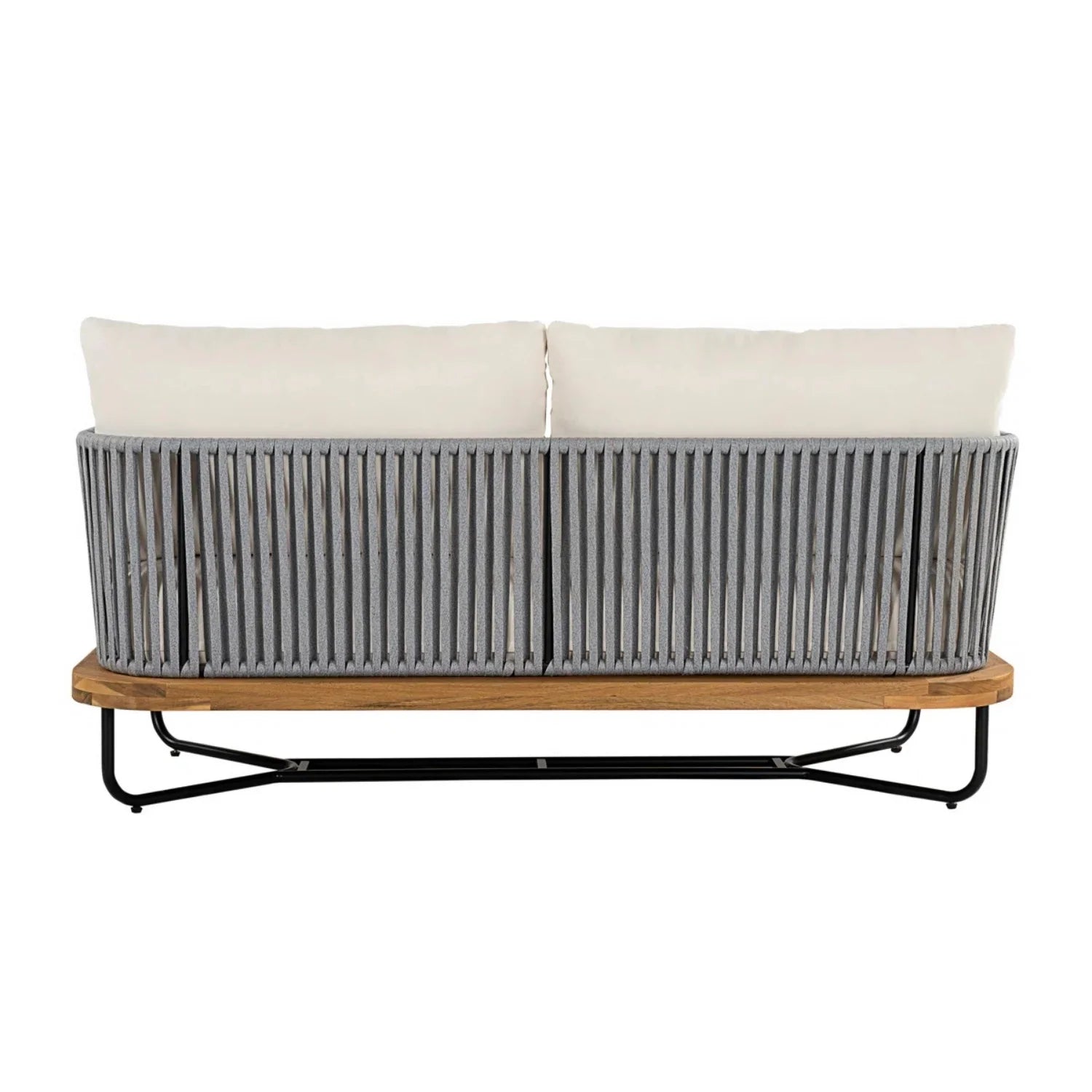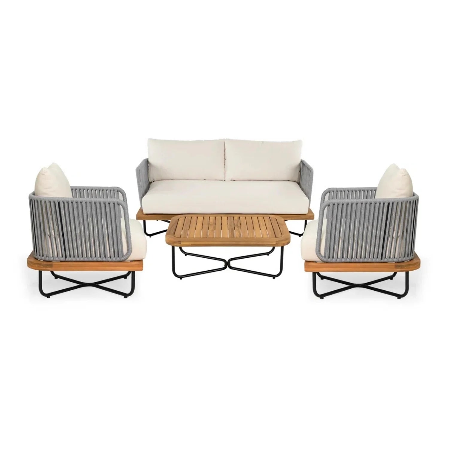 Vibhuti Outdoor 4-Piece Rope Woven Conversation Sofa Set with Wooden Top Table