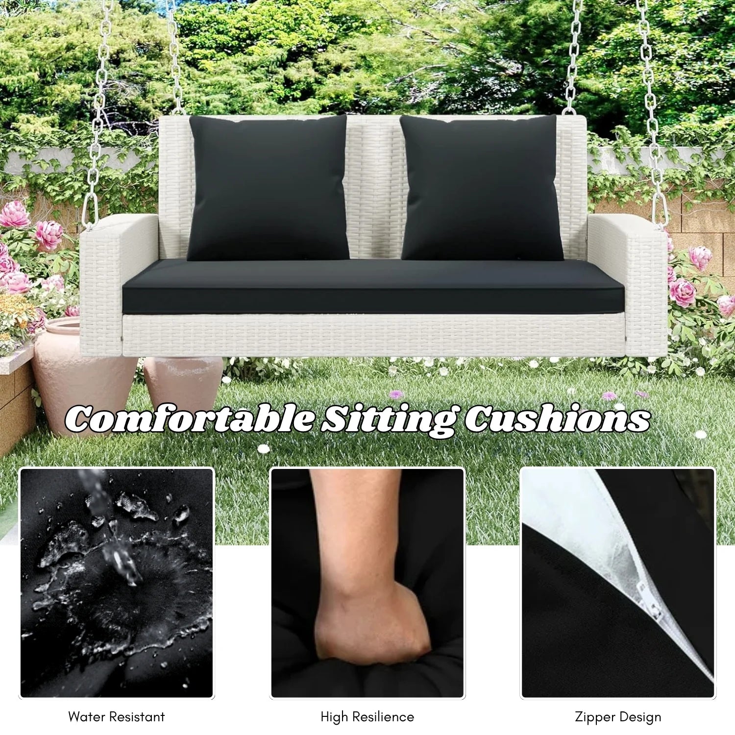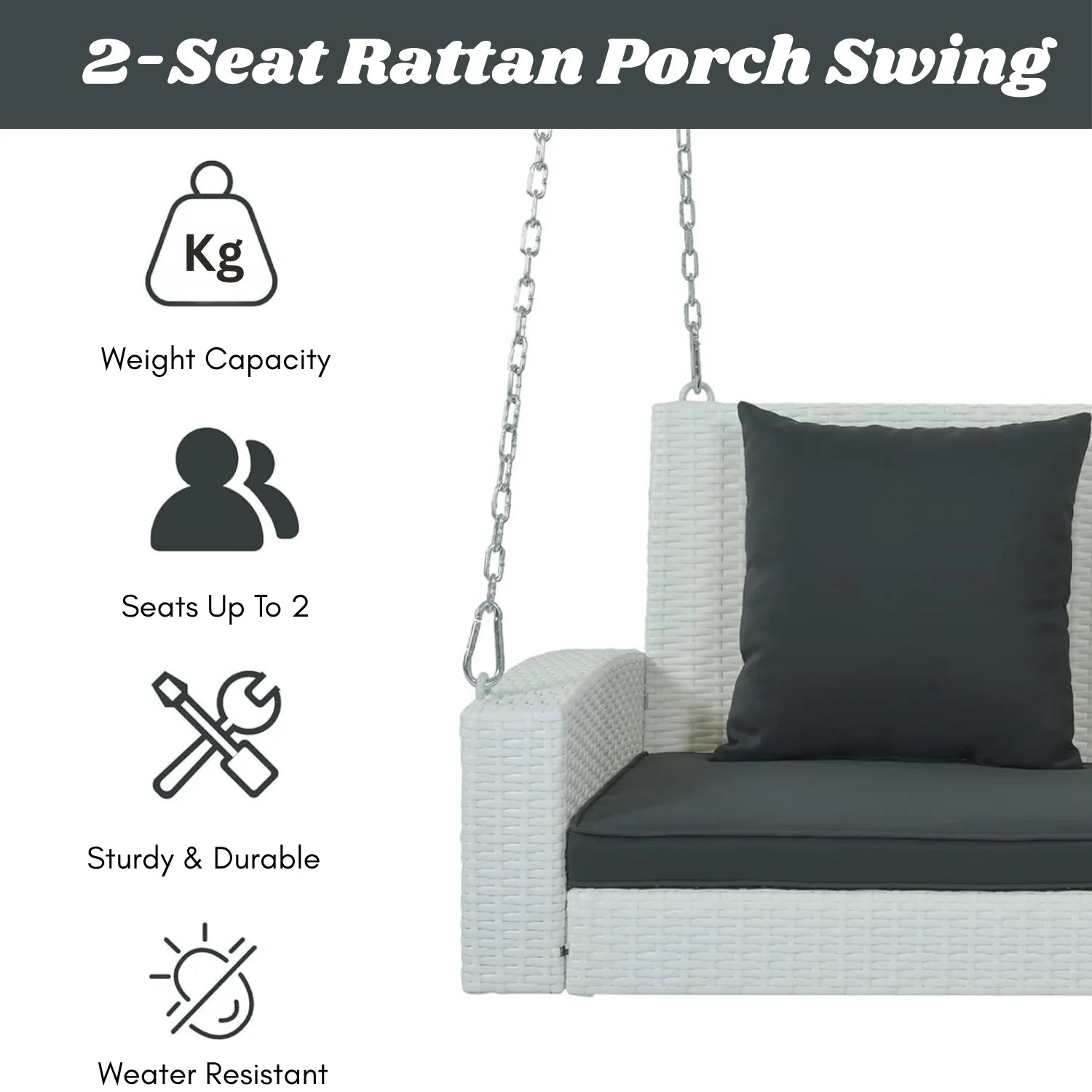 - 1 Double Seater Swing Dimensions: 50″L×22″W×24″H