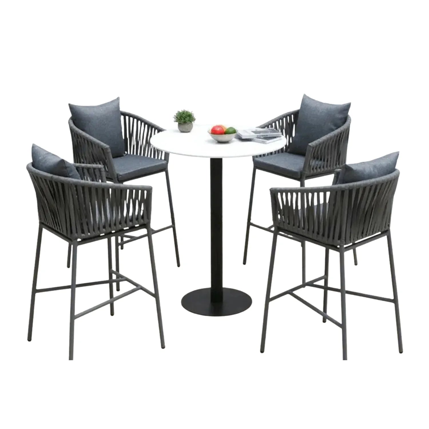 Xyla Outdoor Rope 5-Piece Bar Set With a High-Top Round Table