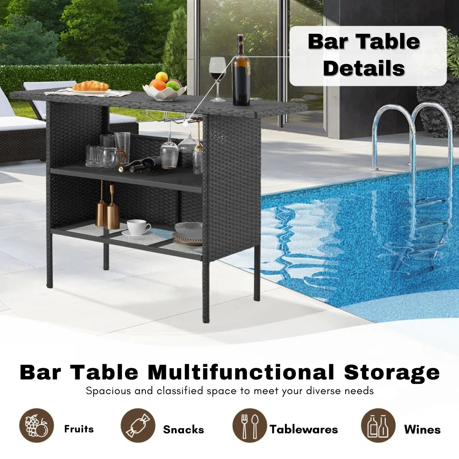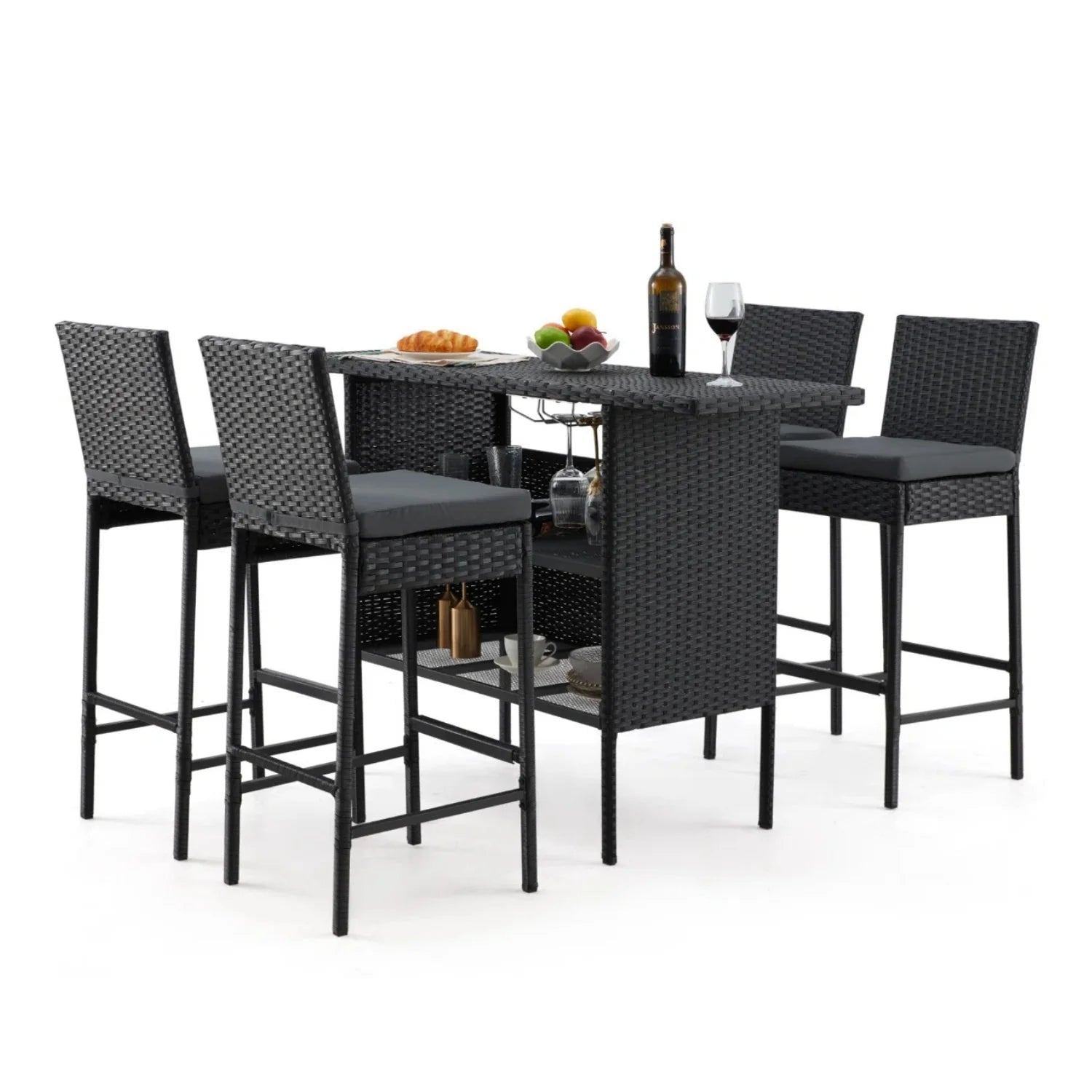 Yvette 5-Piece Outdoor Rattan Wicker Bar Set with Wicker Top Table